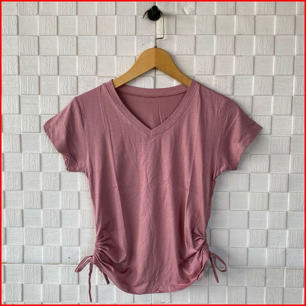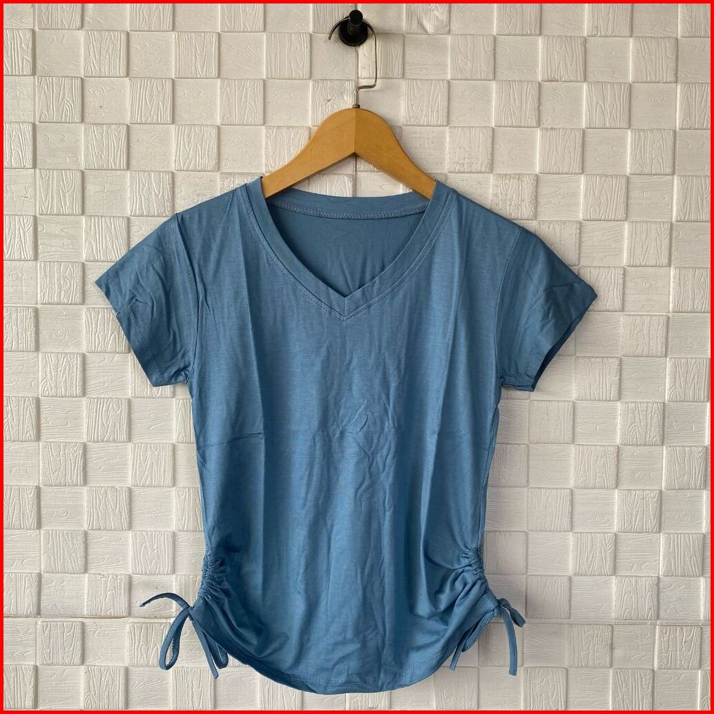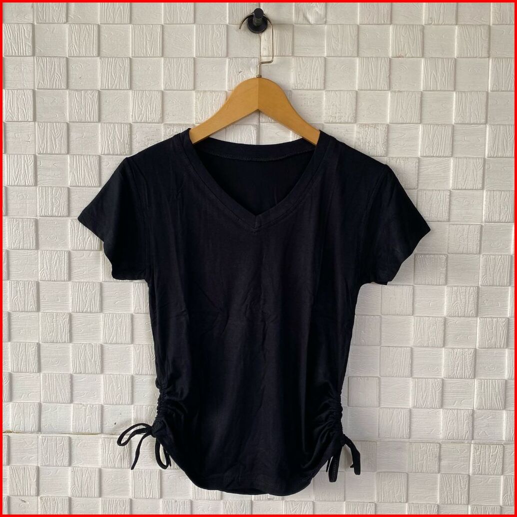 Atasan Kaos Polos Vneck Serut Kanan Kiri Lengan Pendek Wanita Atasan Wanita T-shirt Korean Style Kaos Polos Atasan Terba
