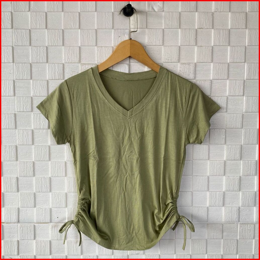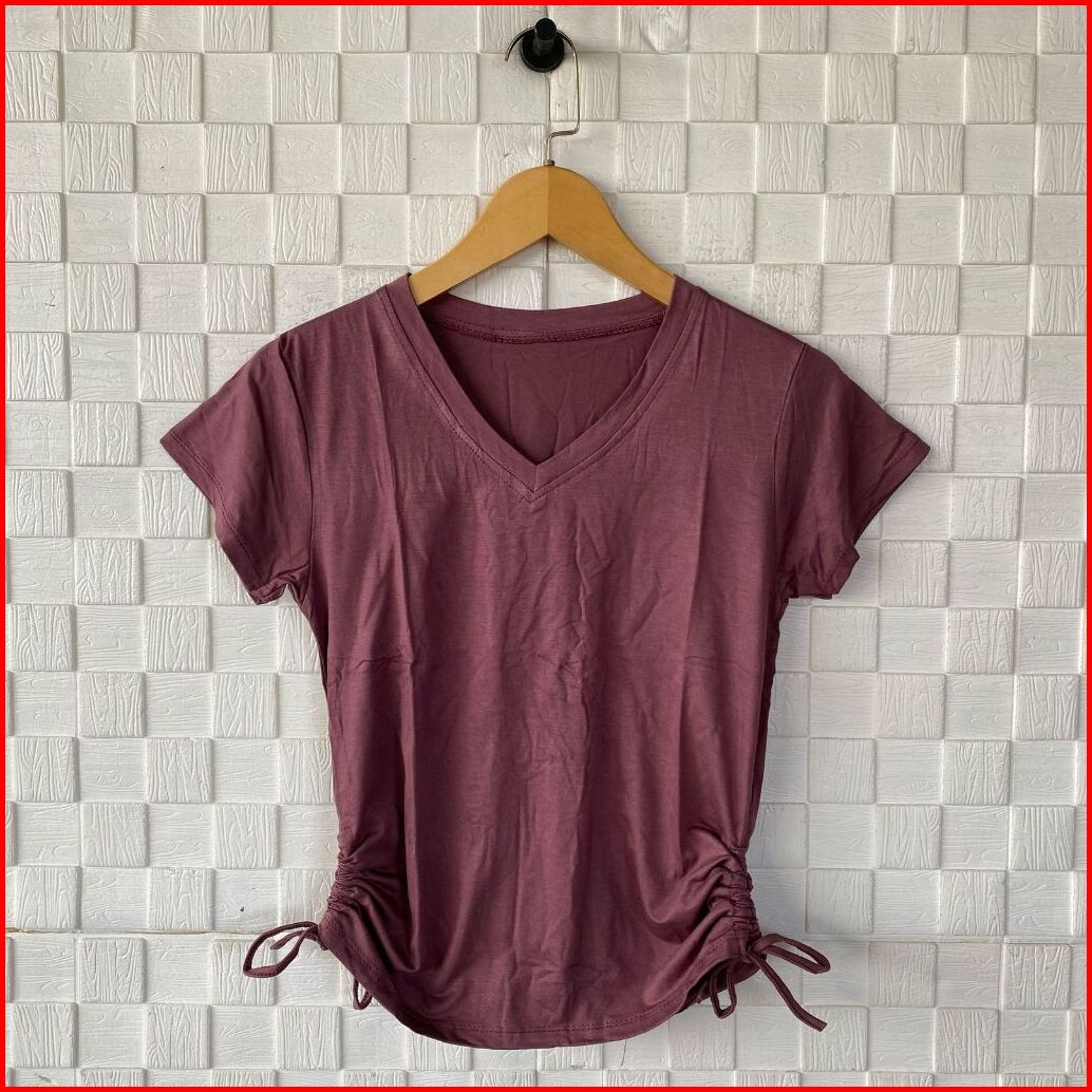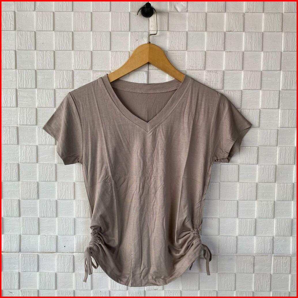 Atasan Kaos Polos Vneck Serut Kanan Kiri Lengan Pendek Wanita Atasan Wanita T-shirt Korean Style Kaos Polos Atasan Terba
