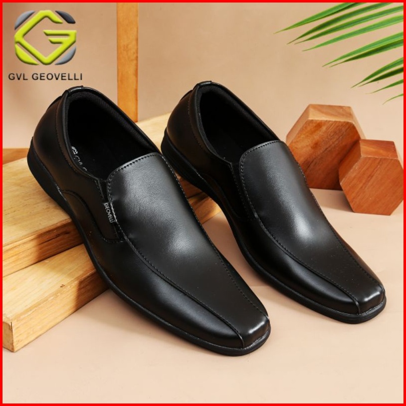 Geovelli Sepatu Formal Pria Hitam Kulit Sintetis