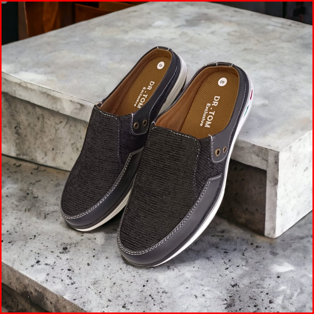 Sepatu Slop Pria Kasual Slip On Sol Karet Bahan Rajut 02