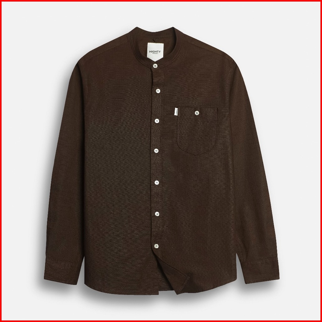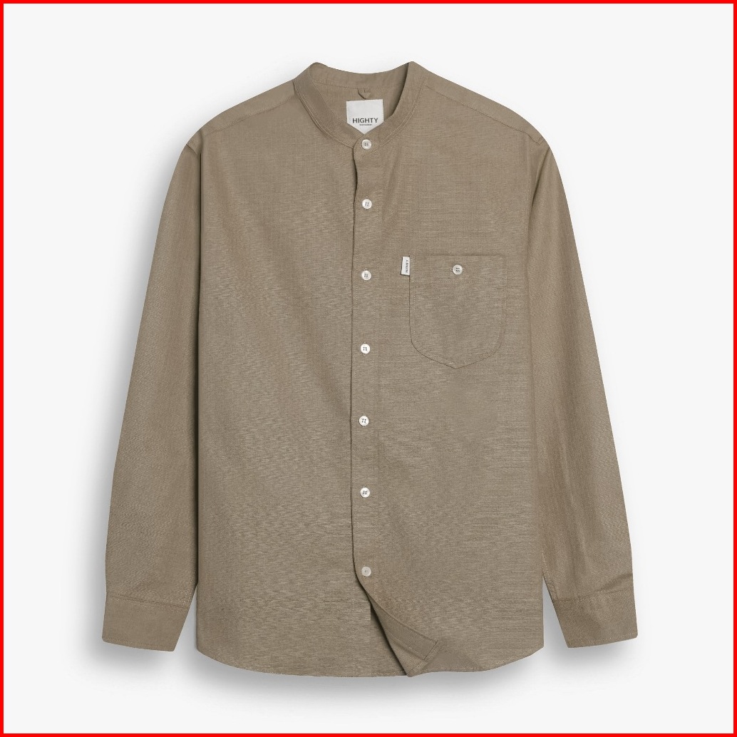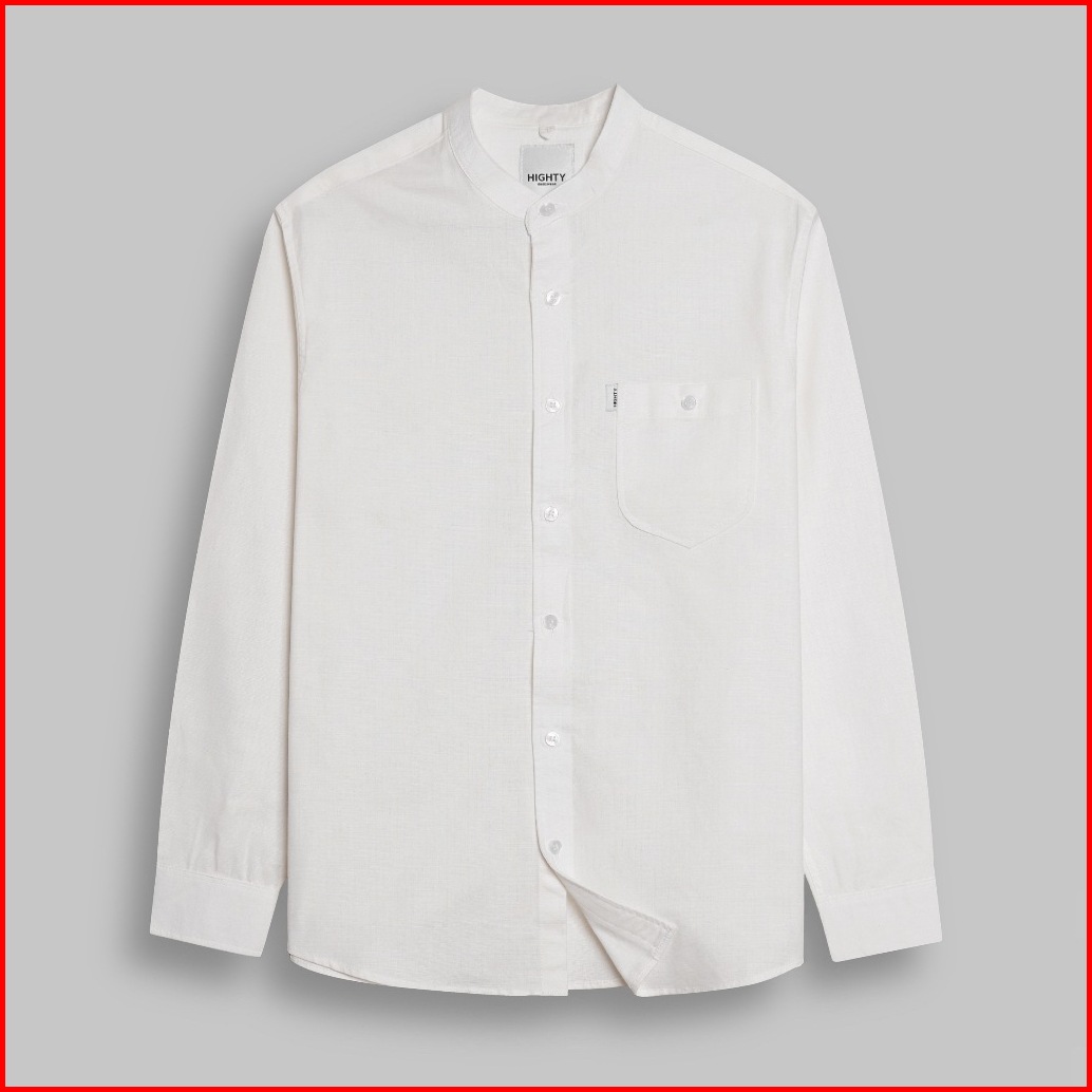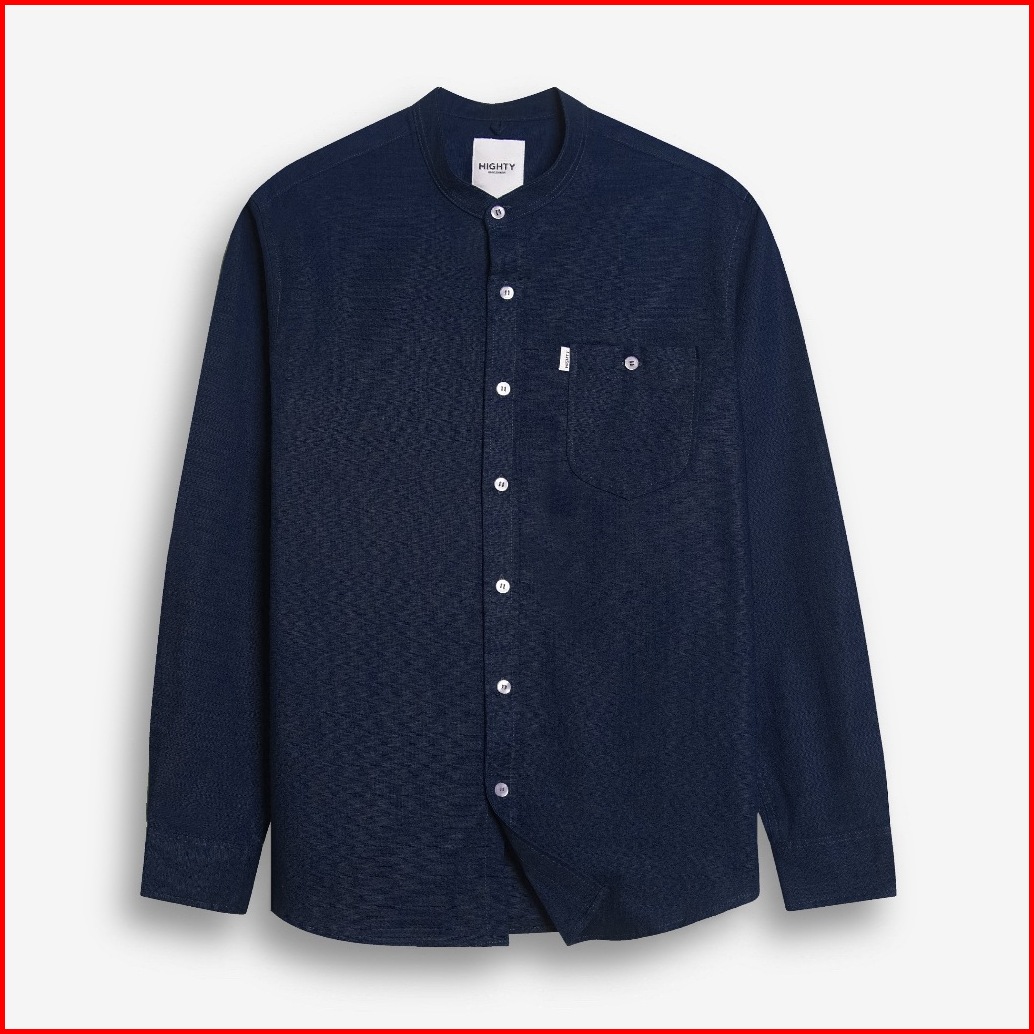 Highty Plain Mandarin Long Sleeve Shirt Kemeja Pria Lengan Panjang Polos Kerah Shanghai Katun
