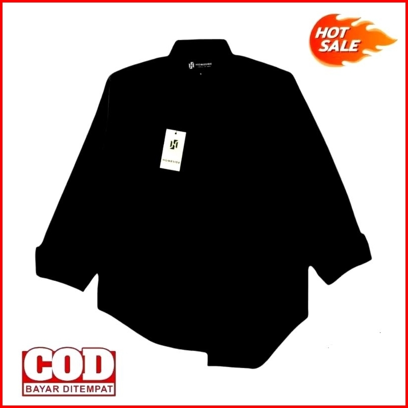 Homeside Kemeja Polos Hitam Pria Lengan Panjang Slimfit Casuall Size M L Xl Xxl Xxxl