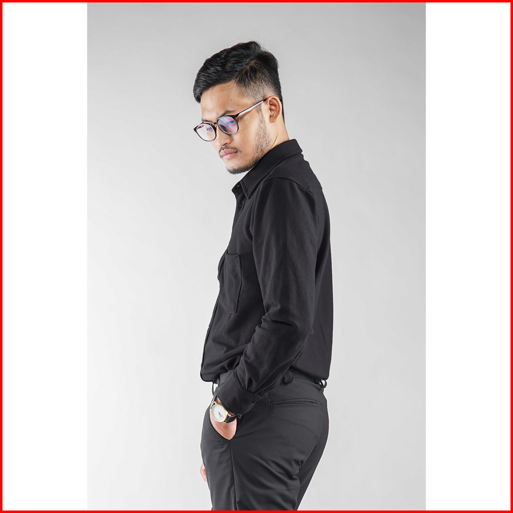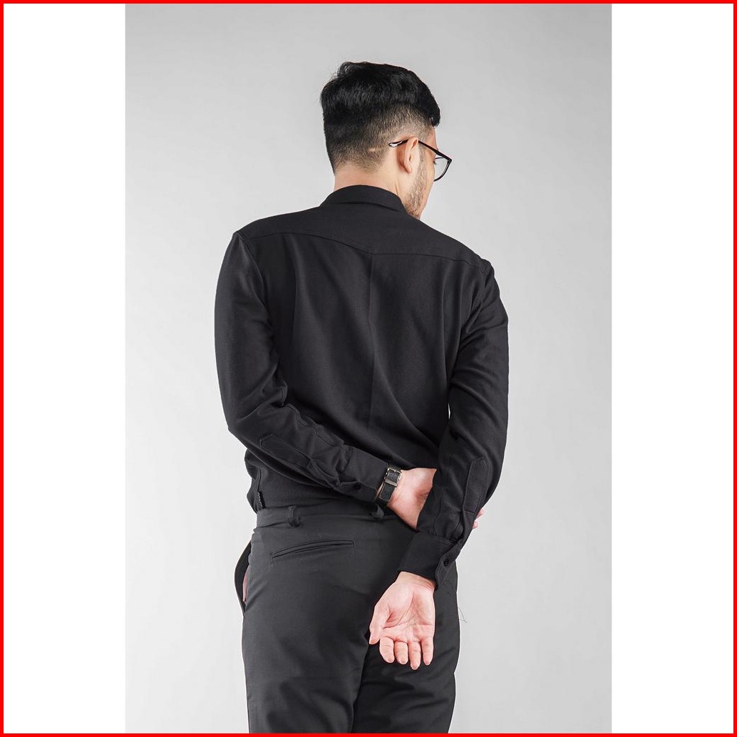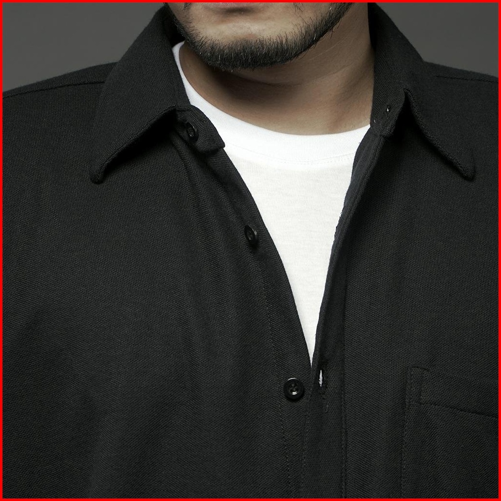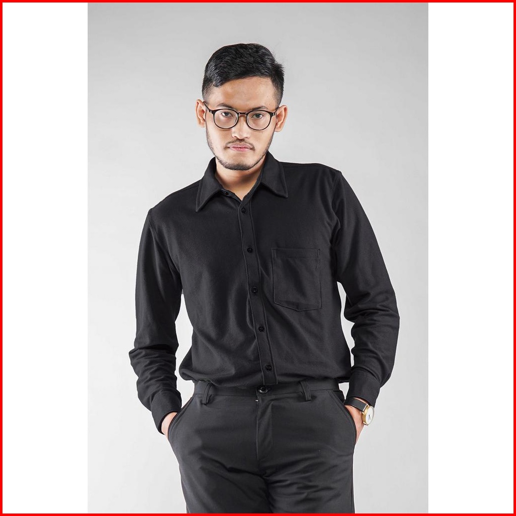 Kemeja Pria Polos Lengan Panjang Dyd Pique Formal Kasual Hitam Otaco