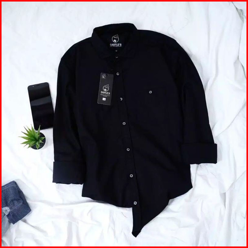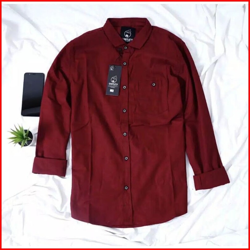 Hot Sale Biajo.shop Kemeja Polos Casual Pria Lengan Panjang