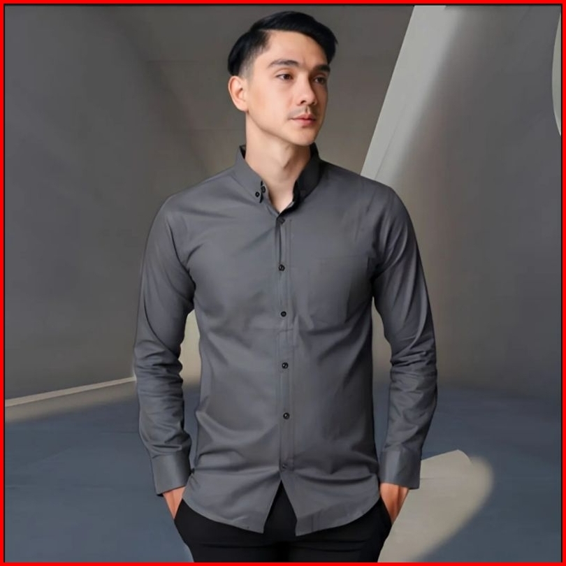 Kemeja Polos Pria Lengan Panjang Slimfit Original Distro Hem Best Quality