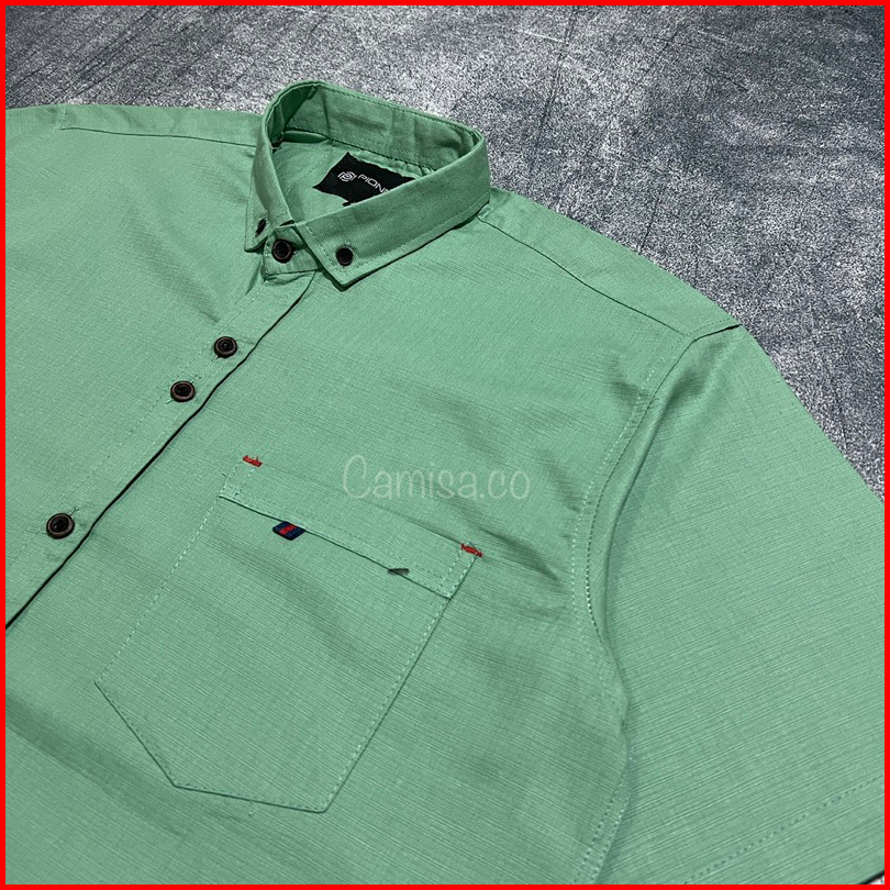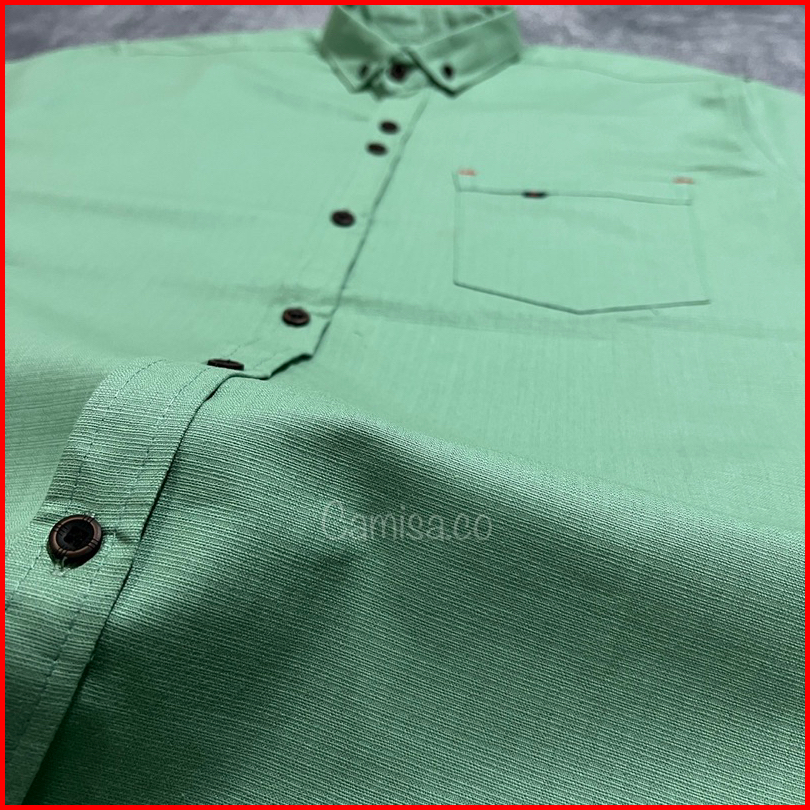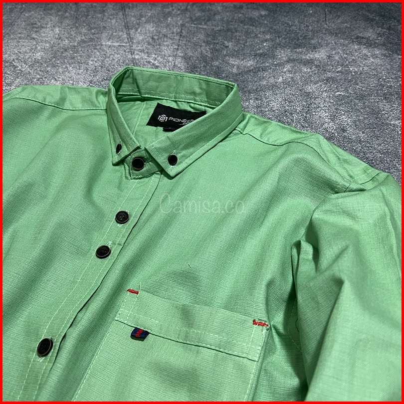 Kemeja Pria Polos Panjang Warna Sage Green Jumbo Bahan Cotton Cigaret Premium