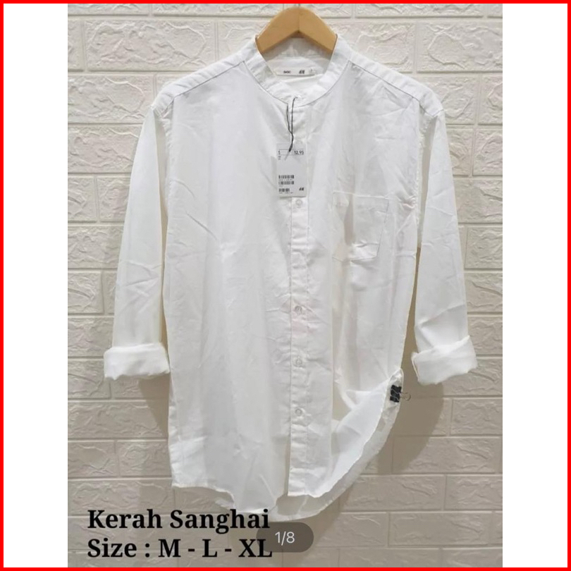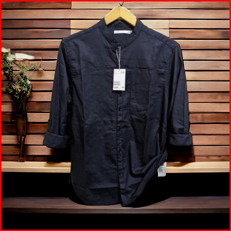 Kemeja Pria Katun Lengan Panjang Kerah Shanghai