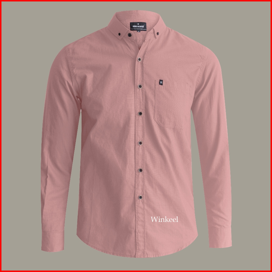 Kemeja Polos Pria Lengan Panjang Warna Dusty Pink Bahan Katun