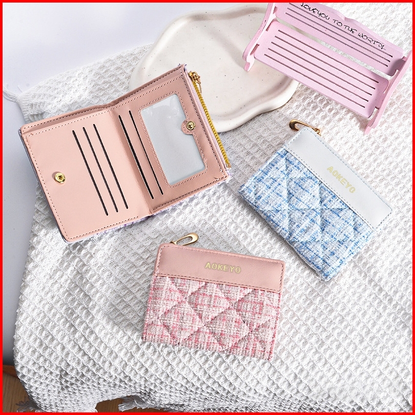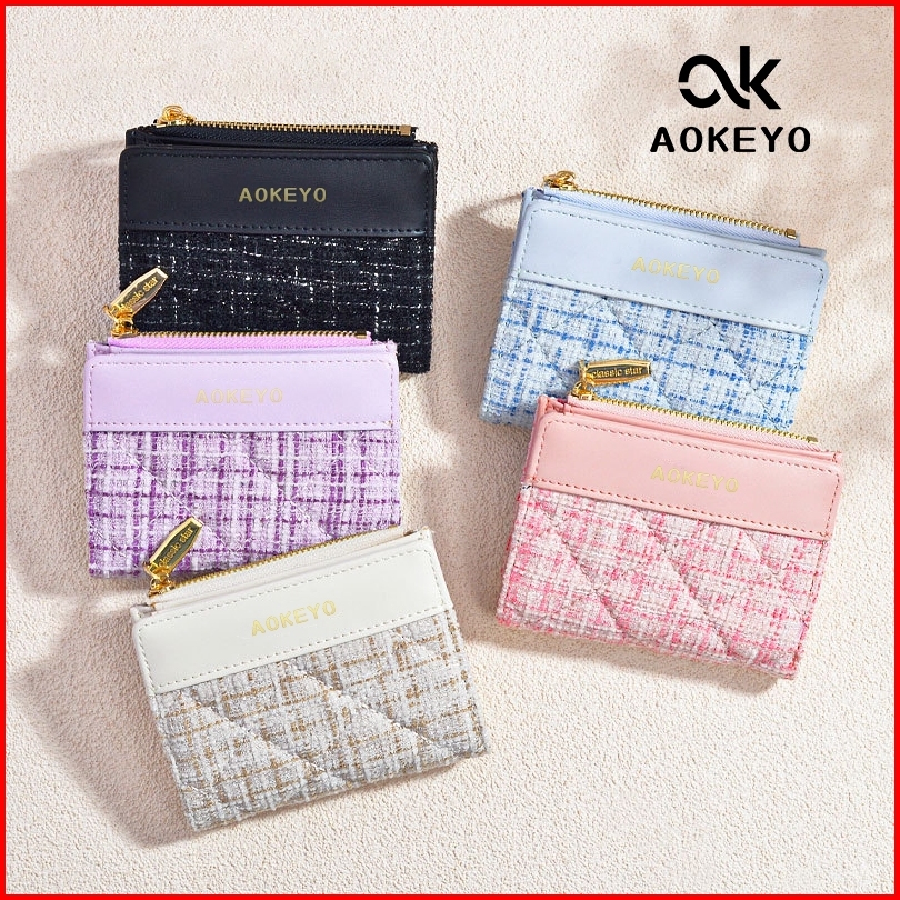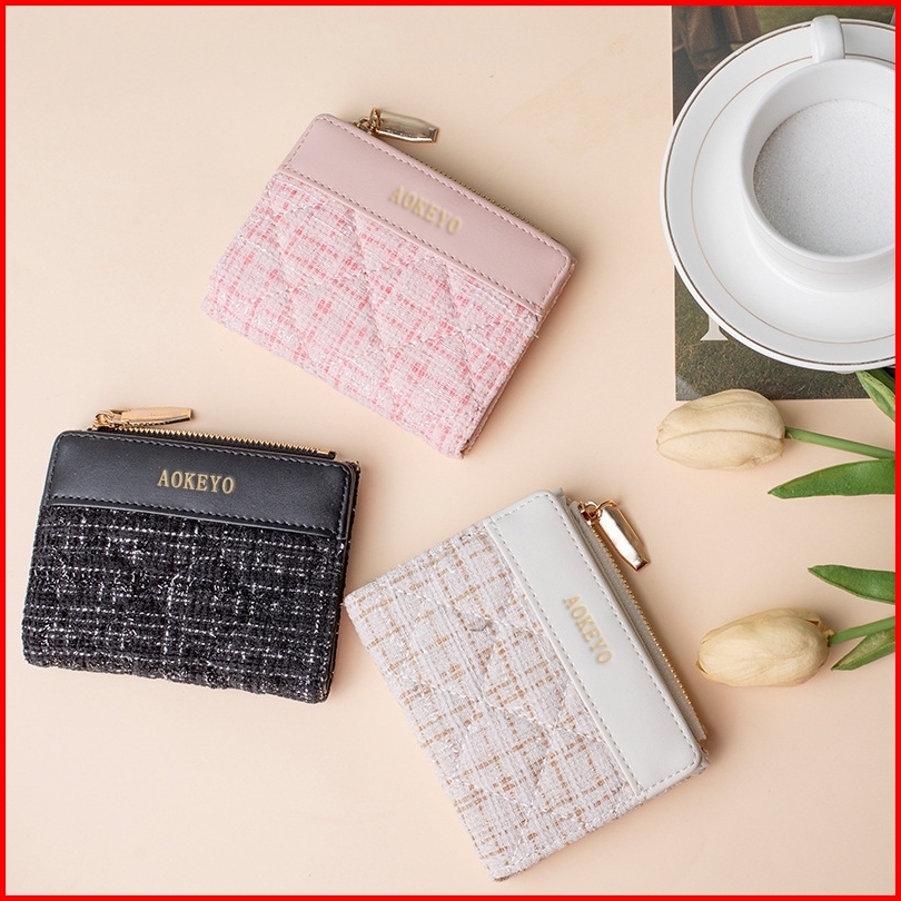 Aokeyo W002 Dompet Wanita Kekinian Dompet Lipat Wanita Kartu Dompet Mini Bahan Premium