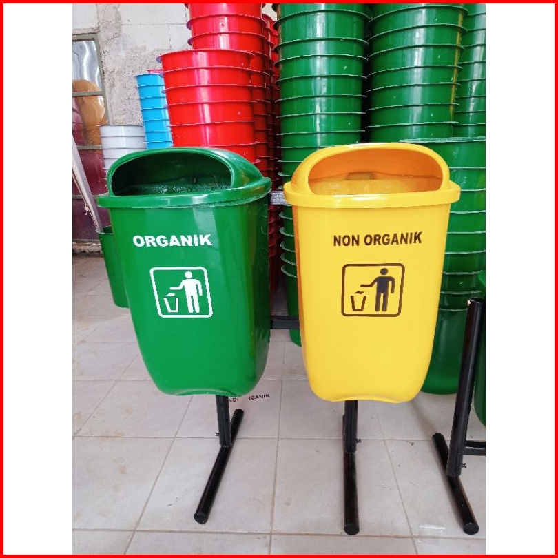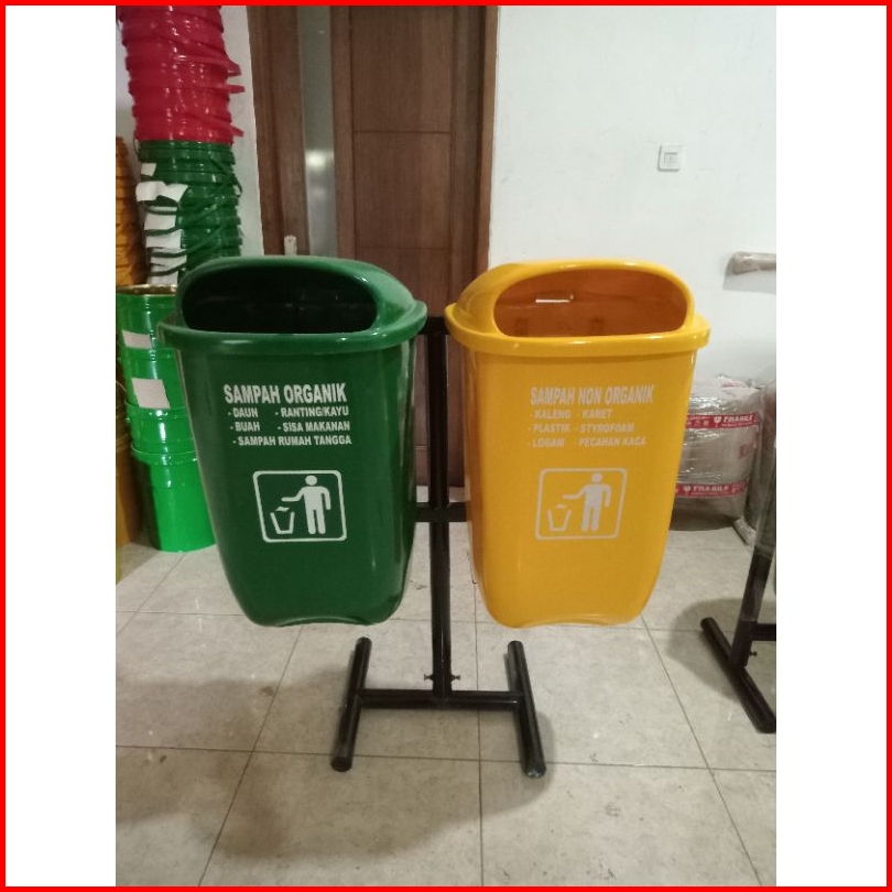 Tempat Sampah Fiber 60 Liter Tempat Sampah Outdoor 2in1 Tempat Sampah Tempat Sampah Organik