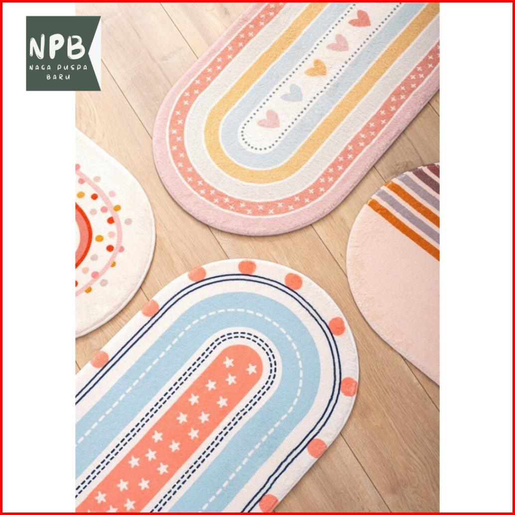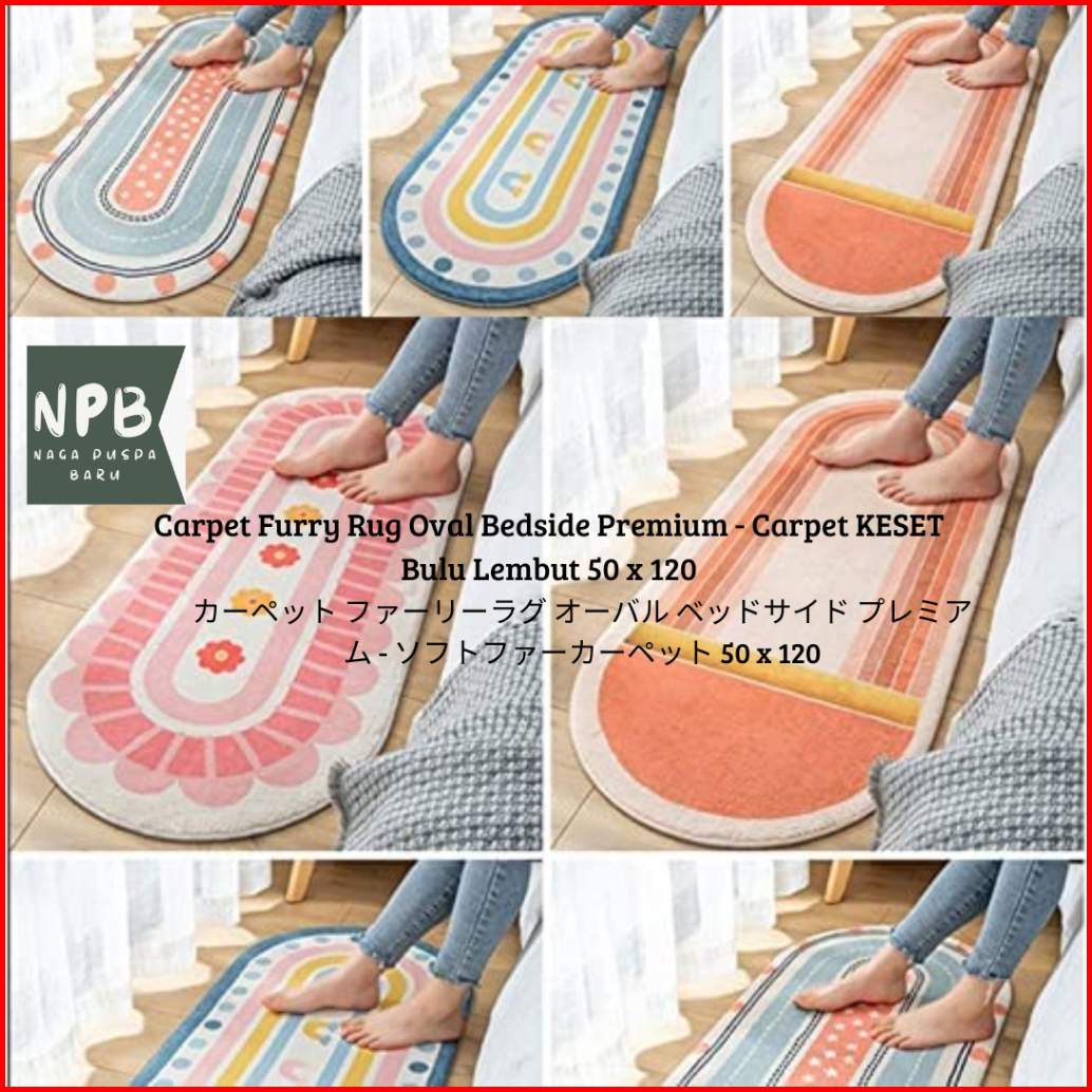 Carpet Furry Rug Oval Bedside Premium - Carpet Keset Bulu Lembut 50 X 120