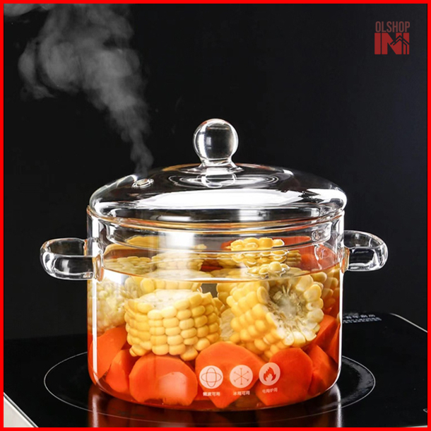Panci Transparan Tahan Panas Cooking Pot Glass Borosilicate
