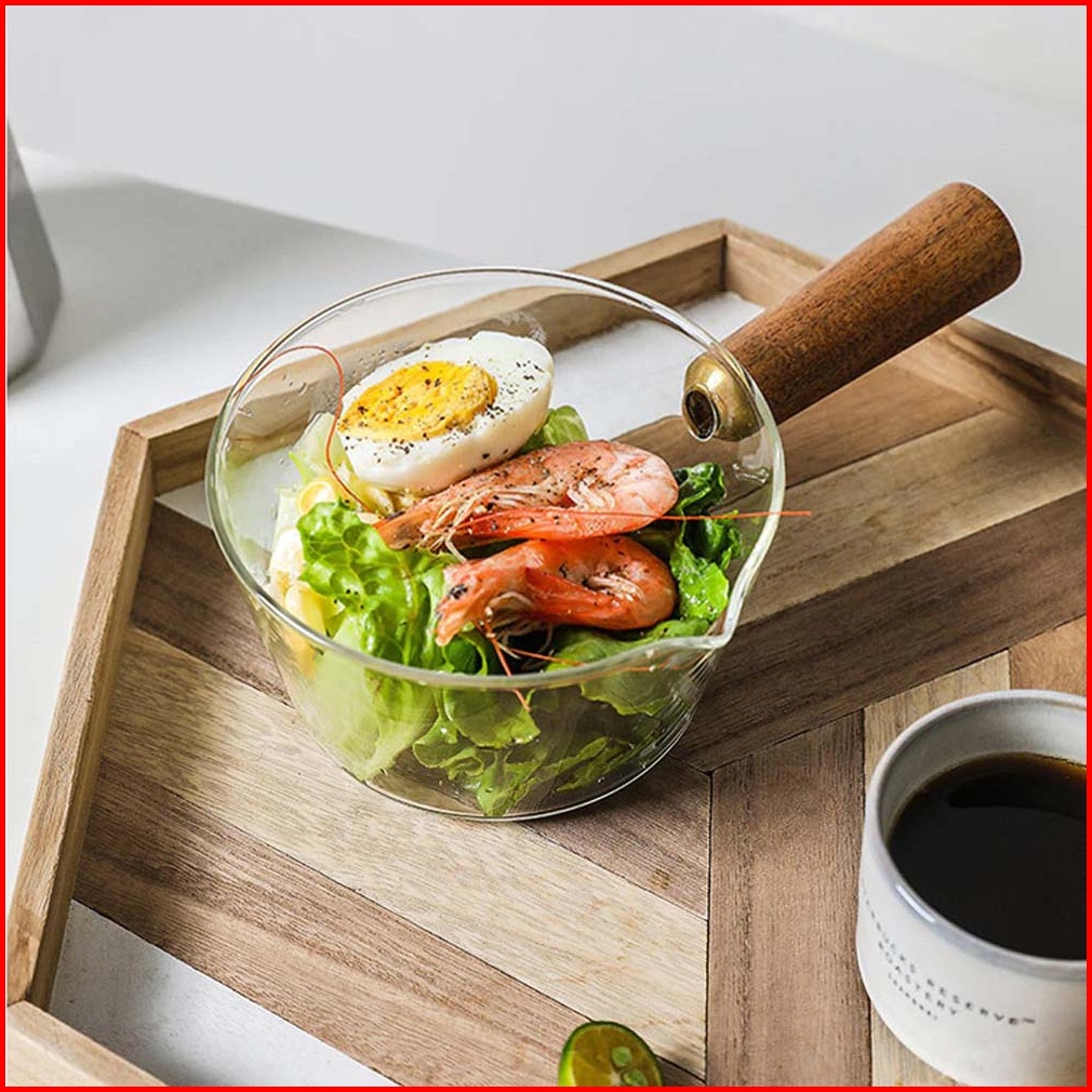 Panci Rebus Mie Sop Kaca Glass Cooking Pot Wooden Handle 400ml 600ml - Transparent