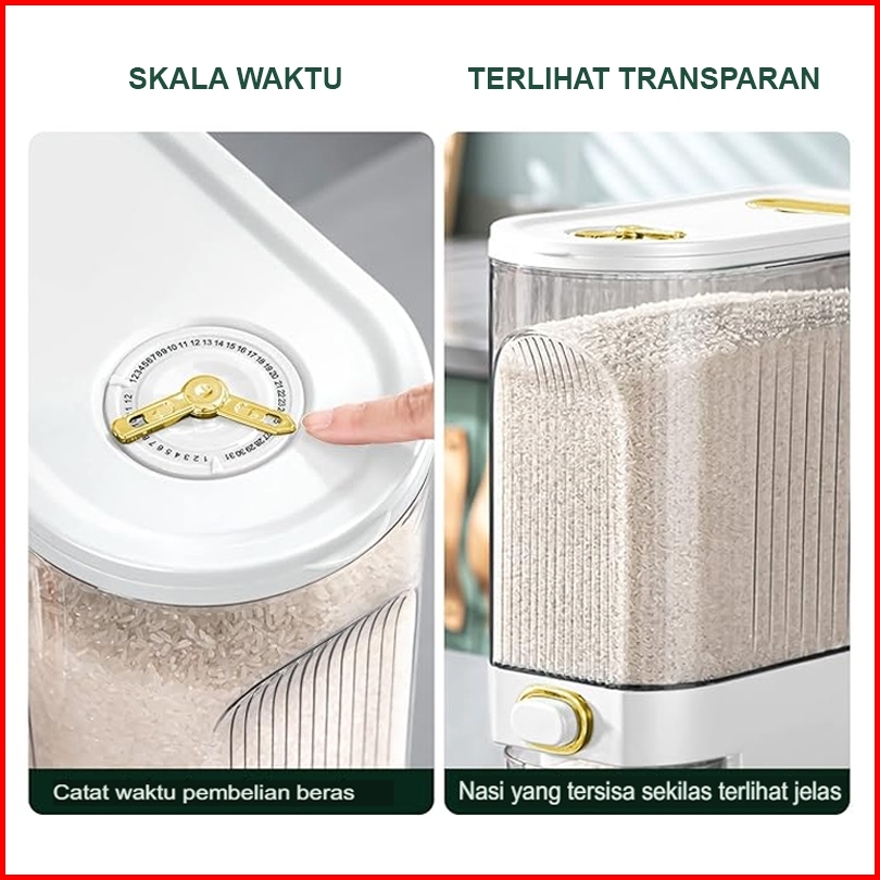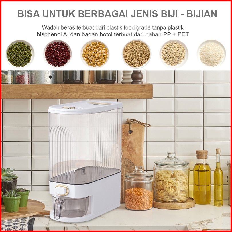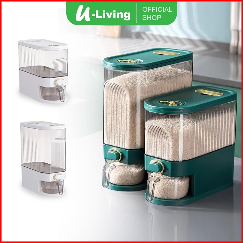 U-living Dispenser Beras Otomatis Kotak Penyimpanan Beras Makanan Kering Untuk Makanan Hewan Bening Fb002