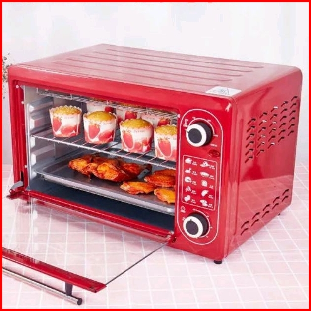 Oven Listrik 52l Toaster Oven 52 Liter Penghangat Makanan Pemanas Dan Pemanggang Daging Ayam Roti Kue Cake Sosis