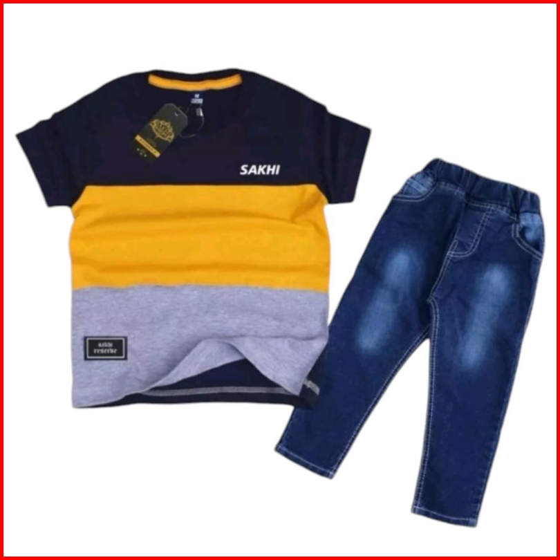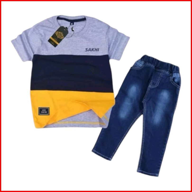 Setelan Anak Laki Laki Untuk Anak Usia 1-12 Tahun Baju Kaos Dan Celana Jeans Olnevy