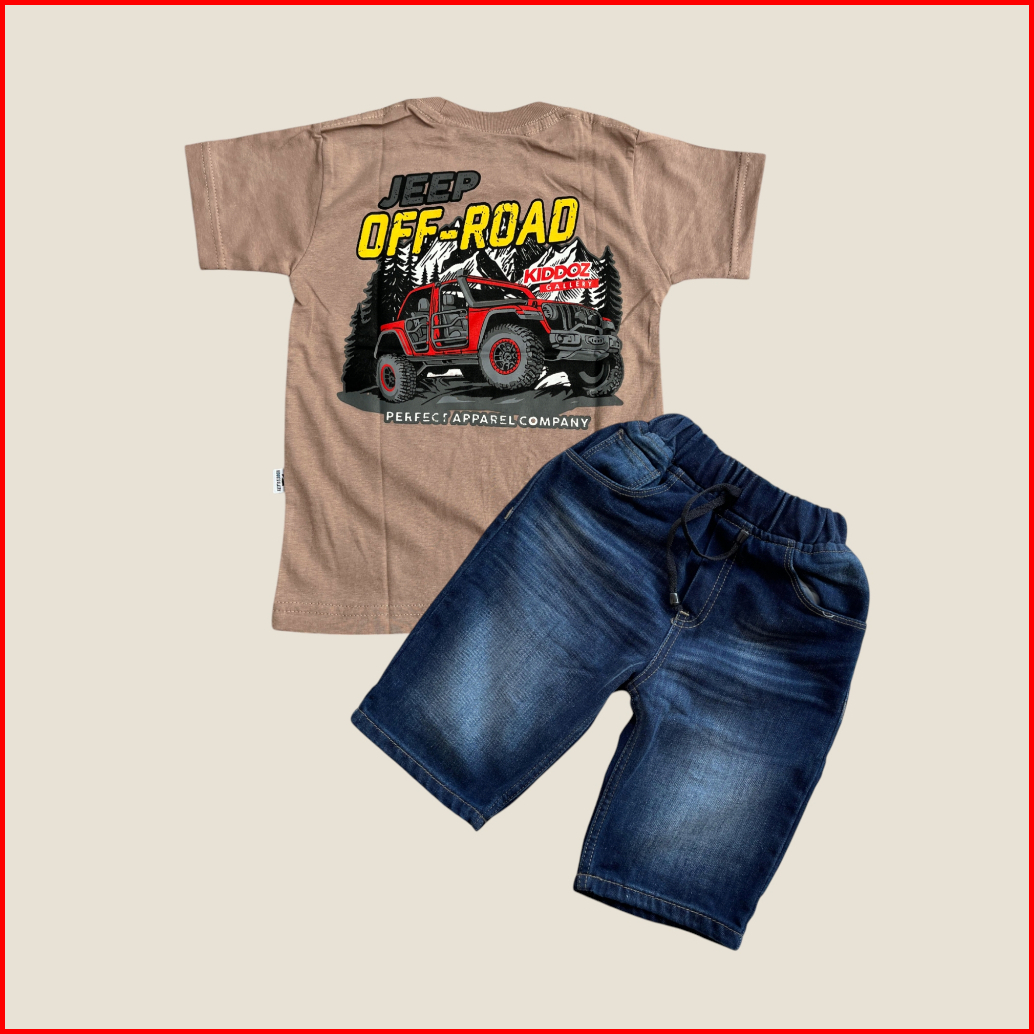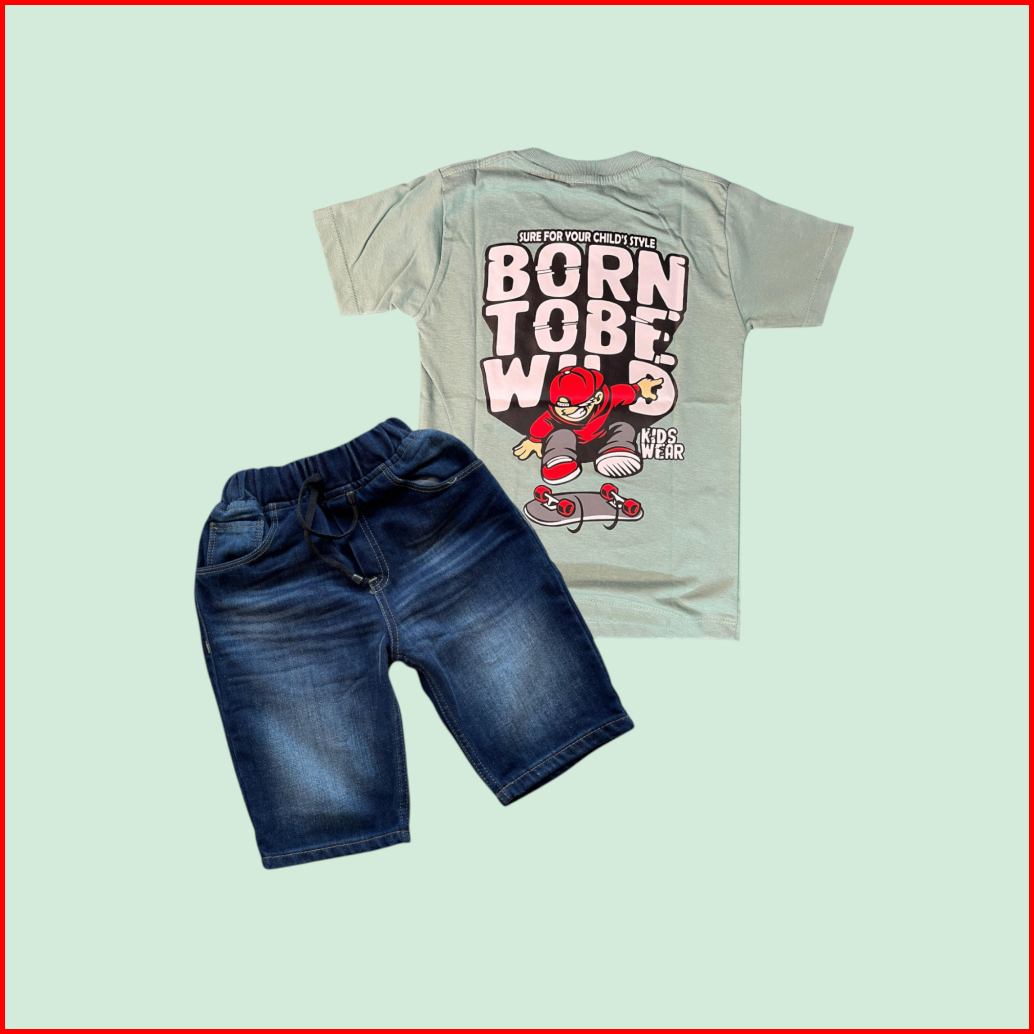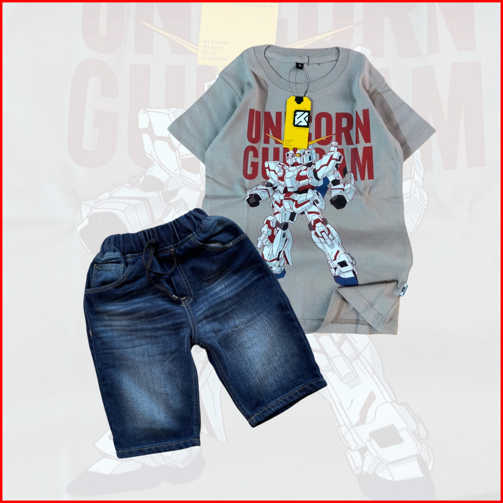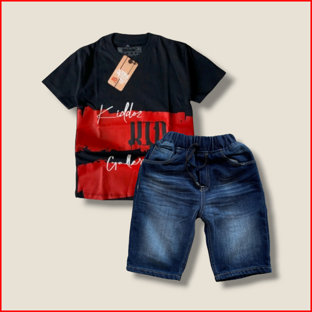 Setelan Jeans Pendek Motif Slim Anak Laki-laki Dan Baju Kaos Distro Bahan Cotton
