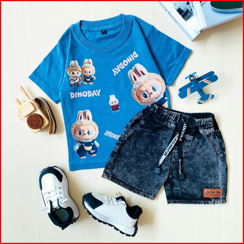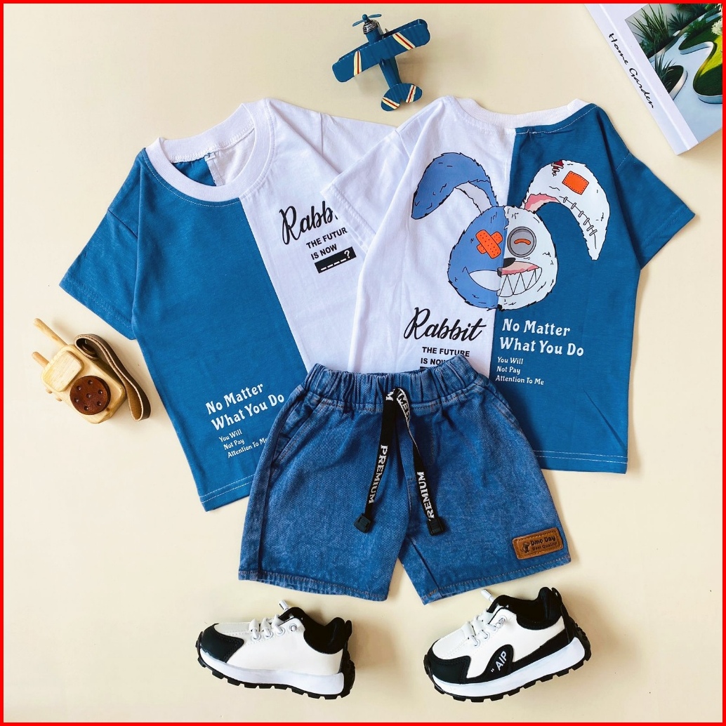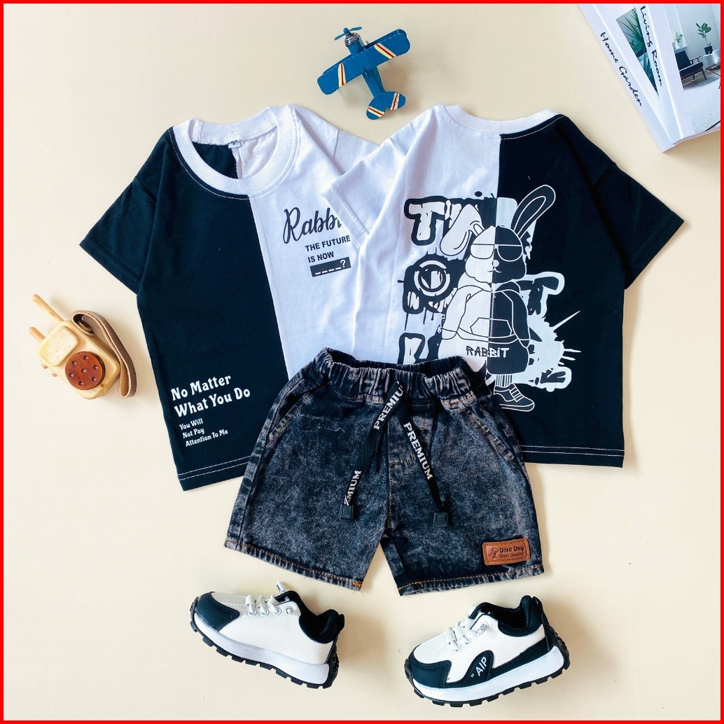 Estishop X Dinoday Setelan Anak Laki Laki Baju Kaos Distro Rabbit Celana Jeans Pendek 1 - 9 Tahun