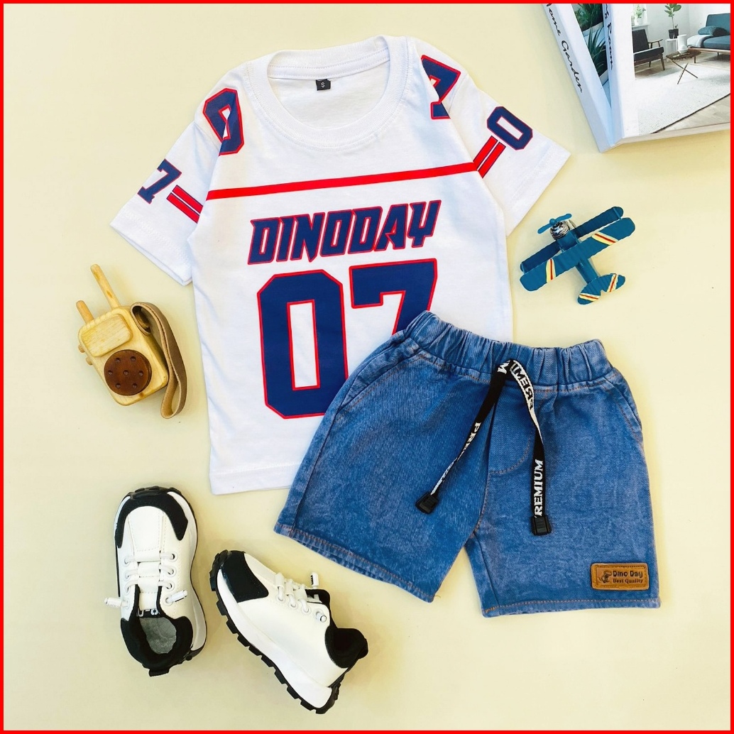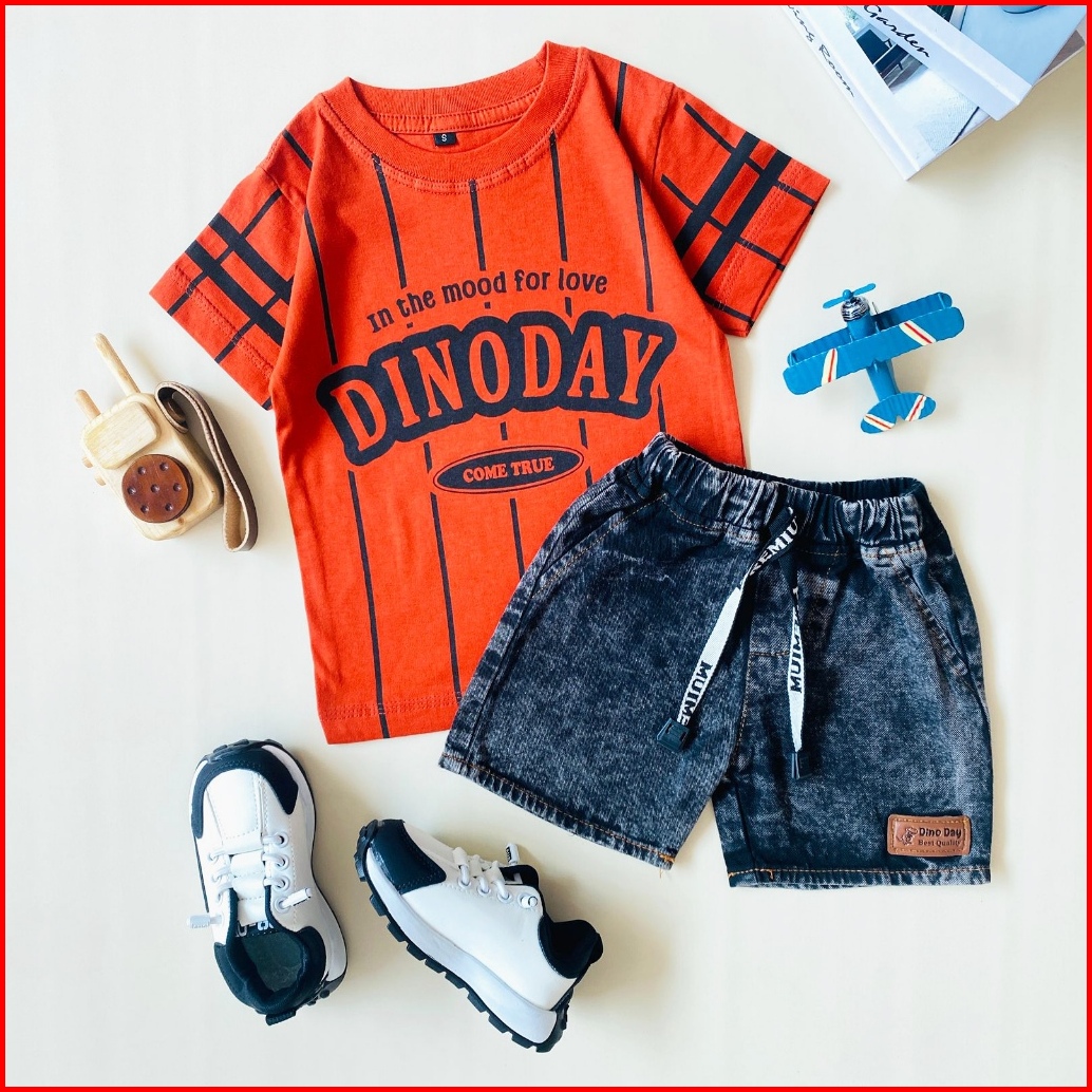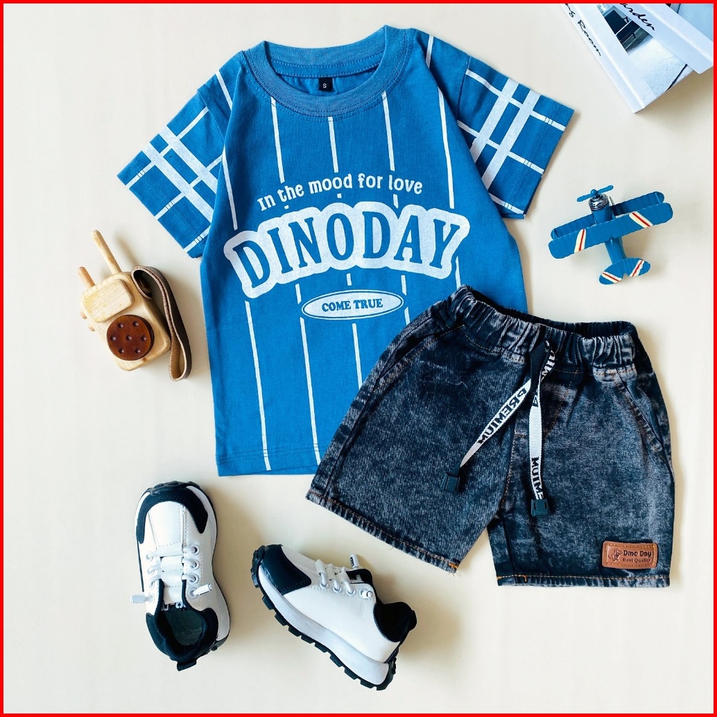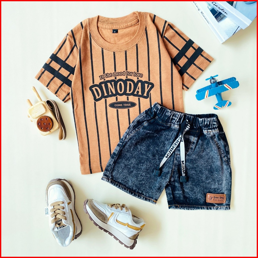 Estishop X Dinoday Setelan Anak Laki Laki Baju Kaos Distro Rabbit Celana Jeans Pendek 1 - 9 Tahun