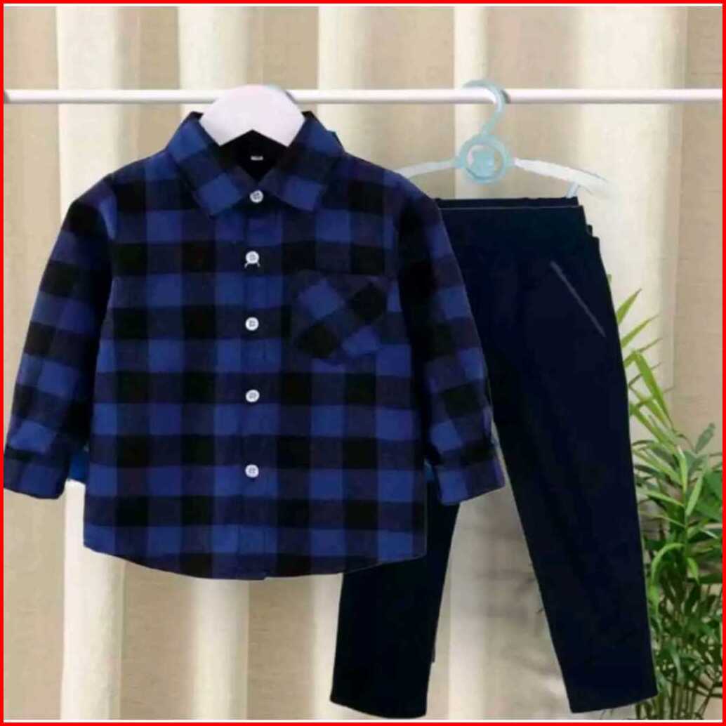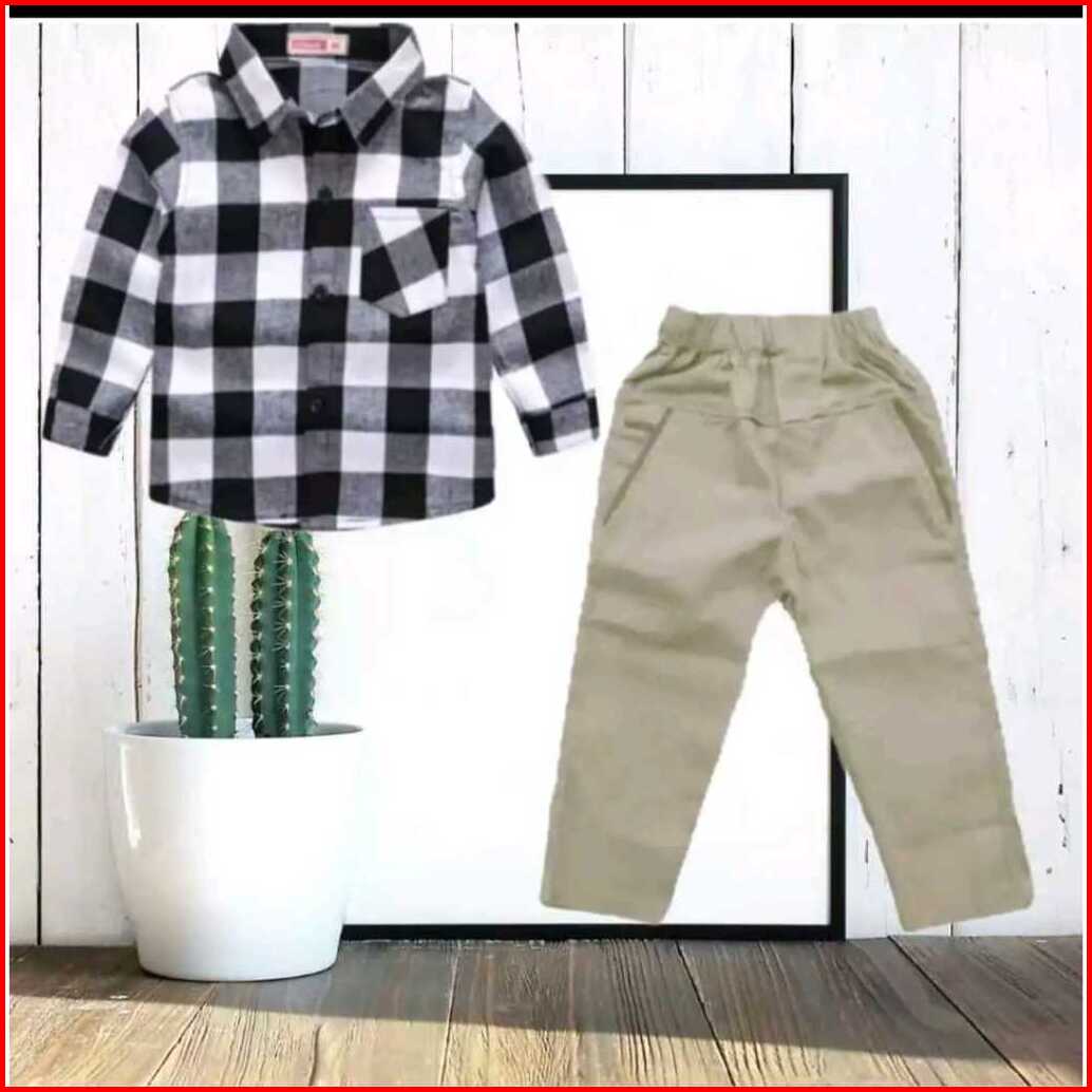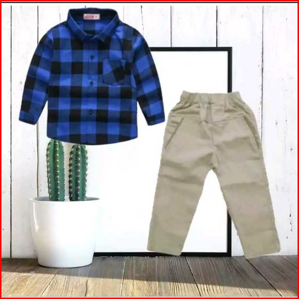 Pilih Warna Setelan Kemeja Flanel Anak Dan Chinos Panjang Usia 1-10 Thn