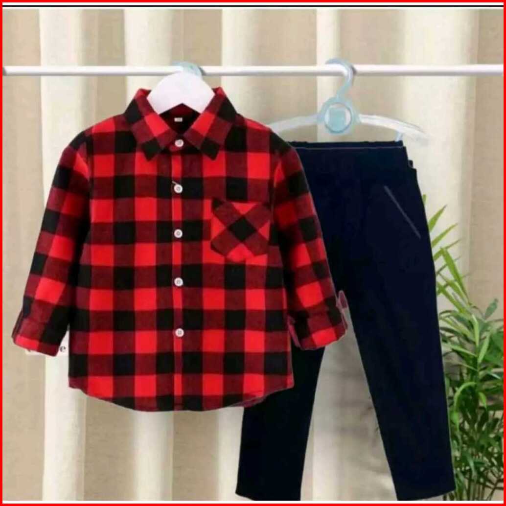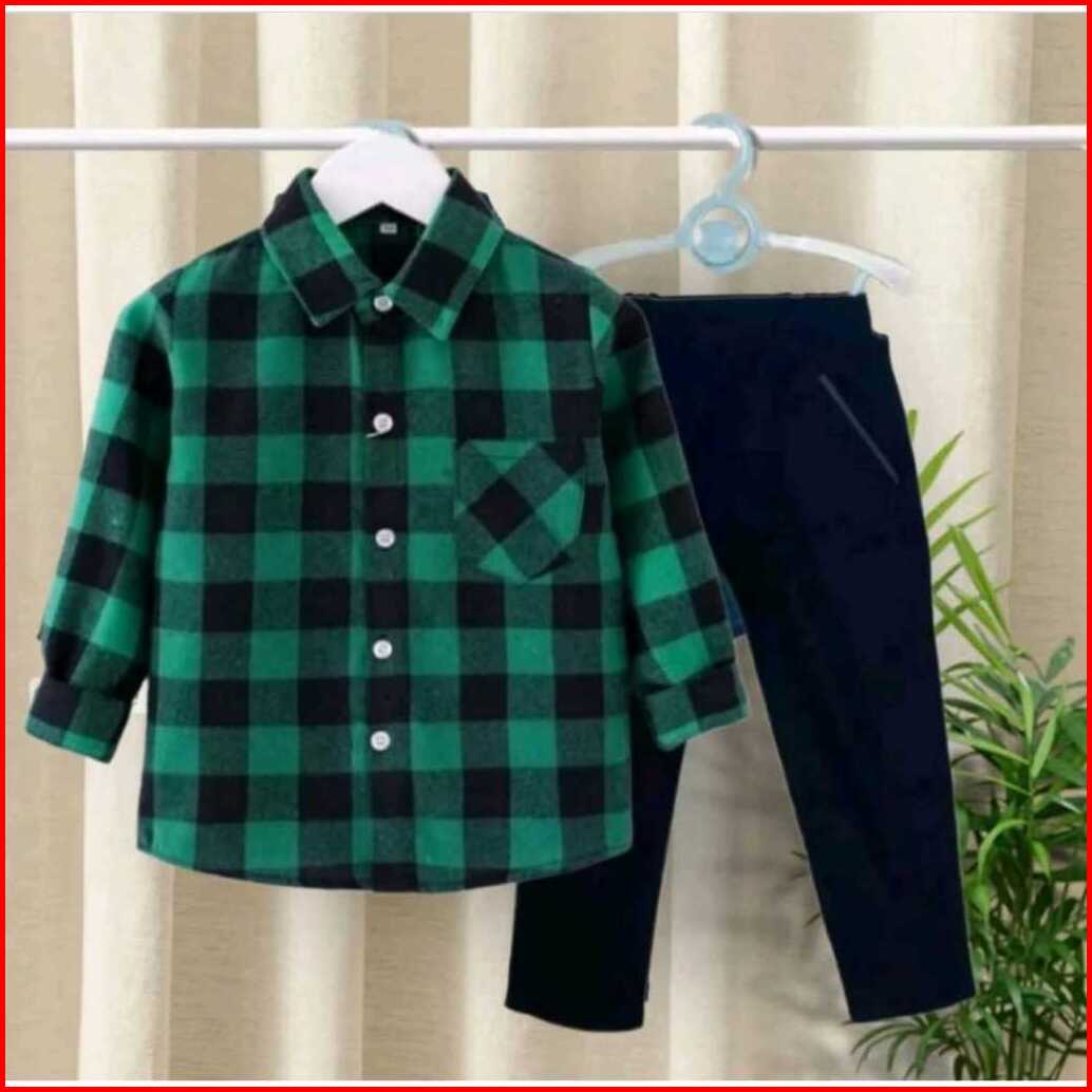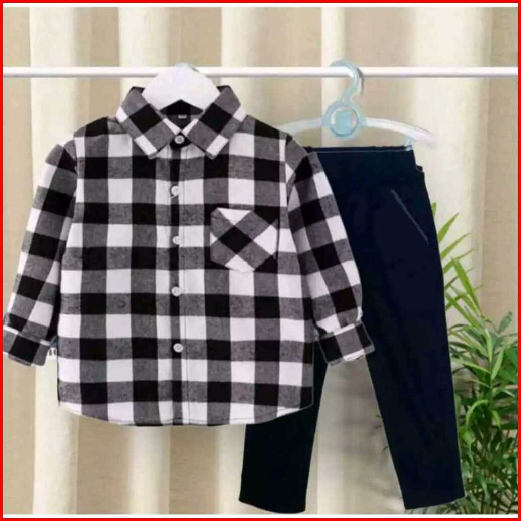 Pilih Warna Setelan Kemeja Flanel Anak Dan Chinos Panjang Usia 1-10 Thn