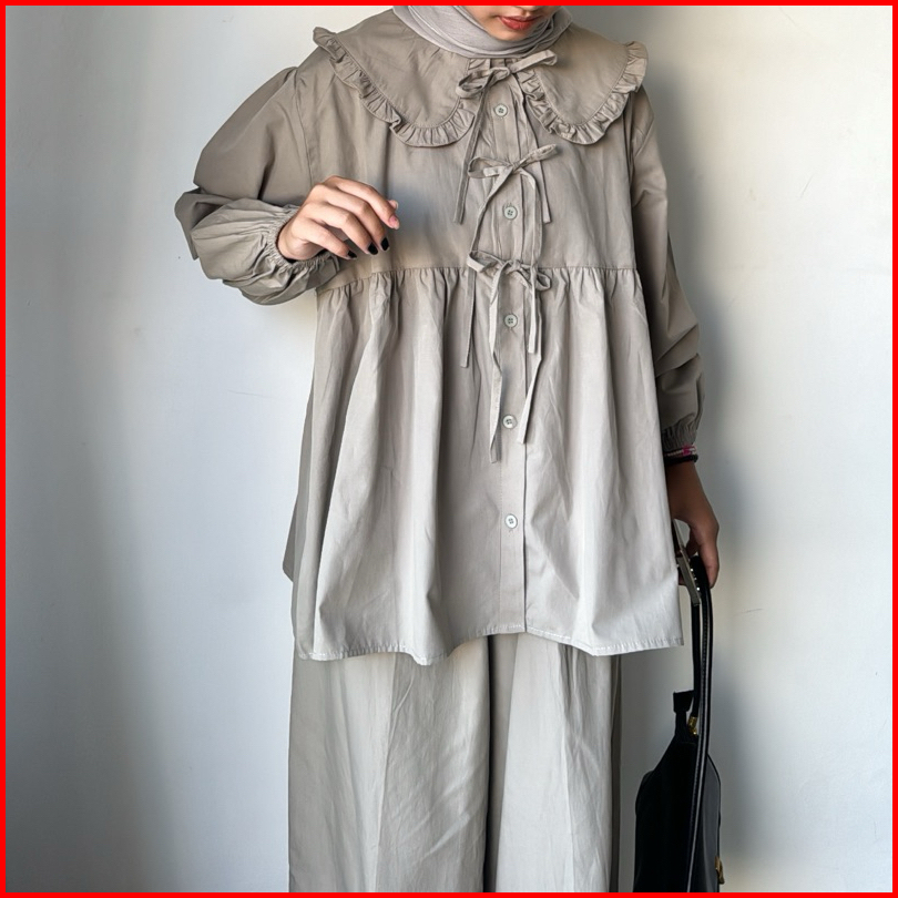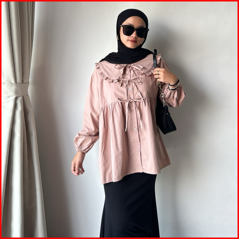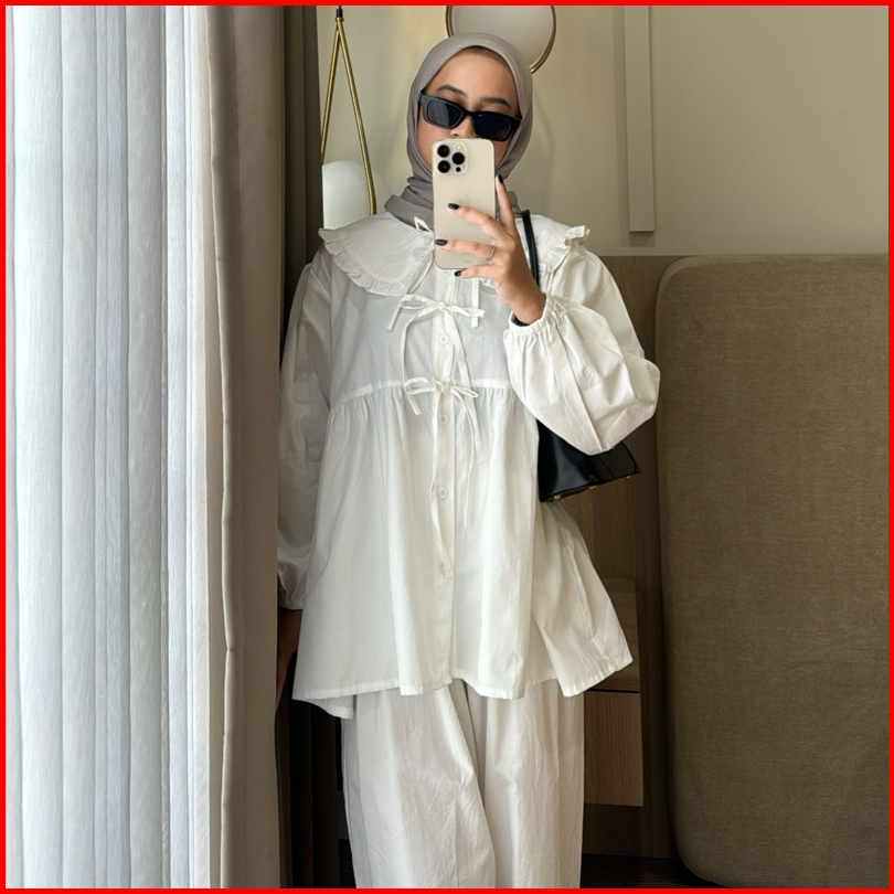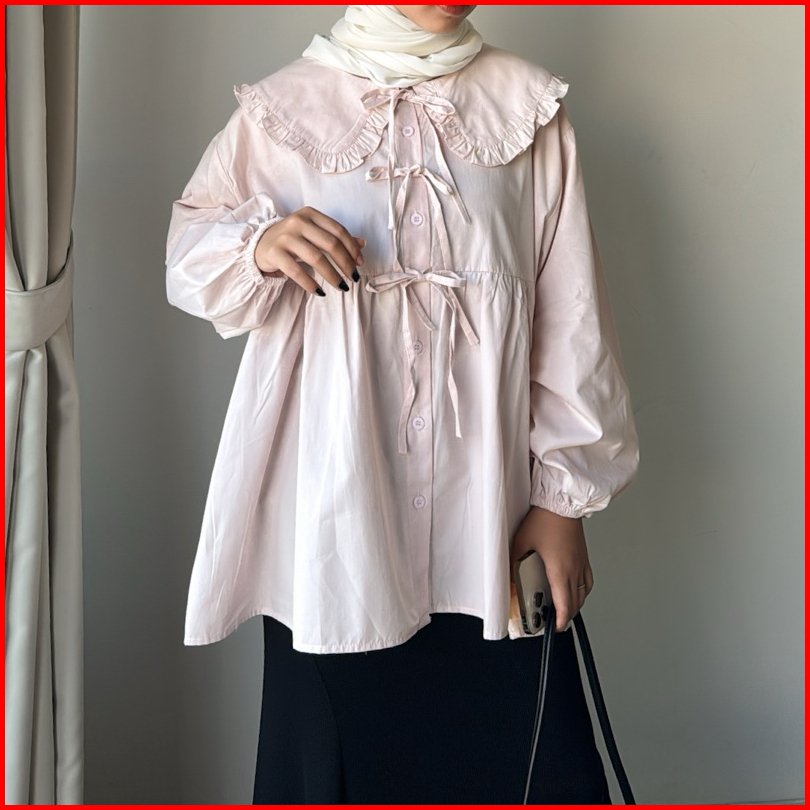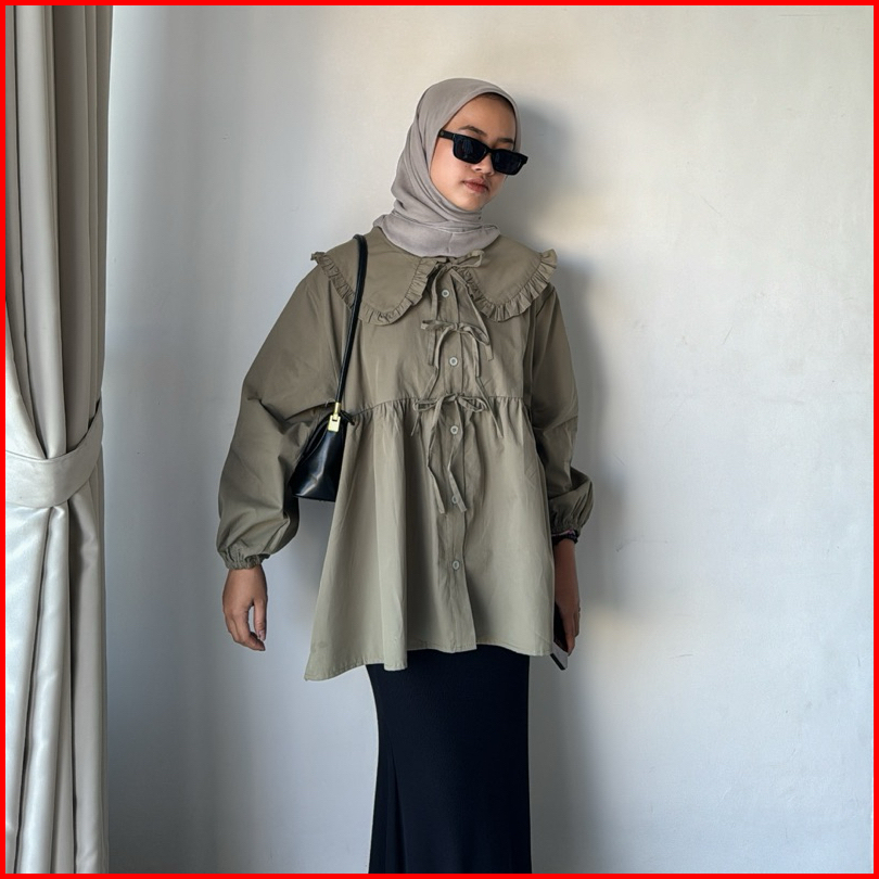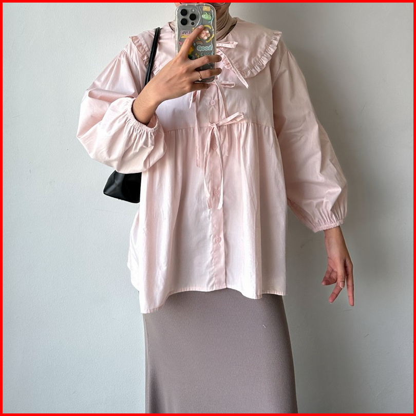 Chayra Shirt - Kode 1766 Ribbon By Yelowfacy Kemeja Baju Atasan Wanita Pita Katun Poplin