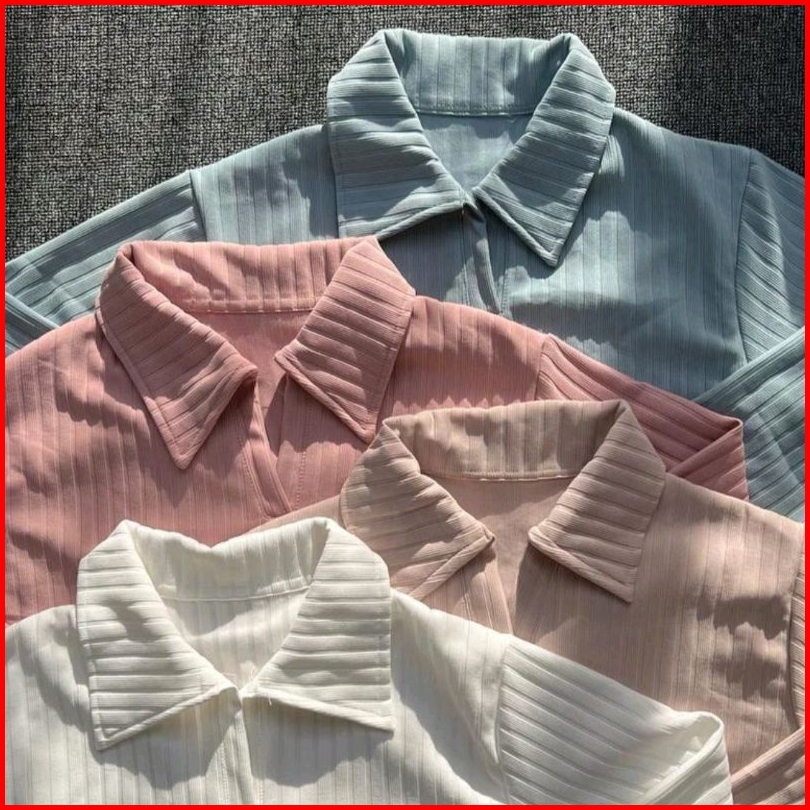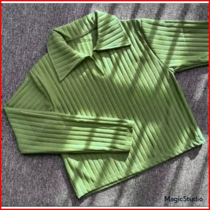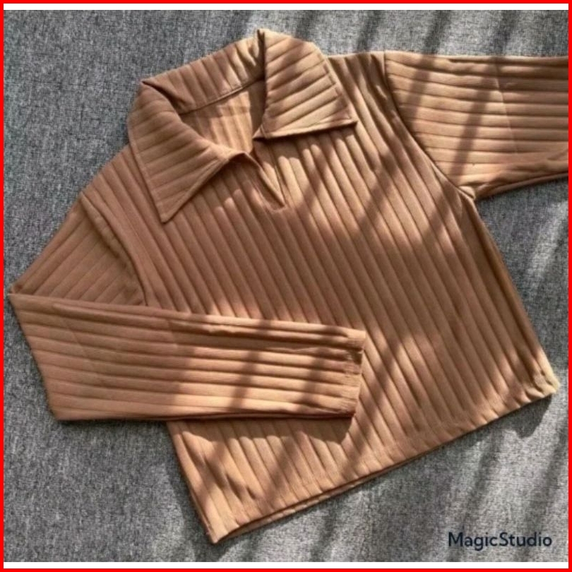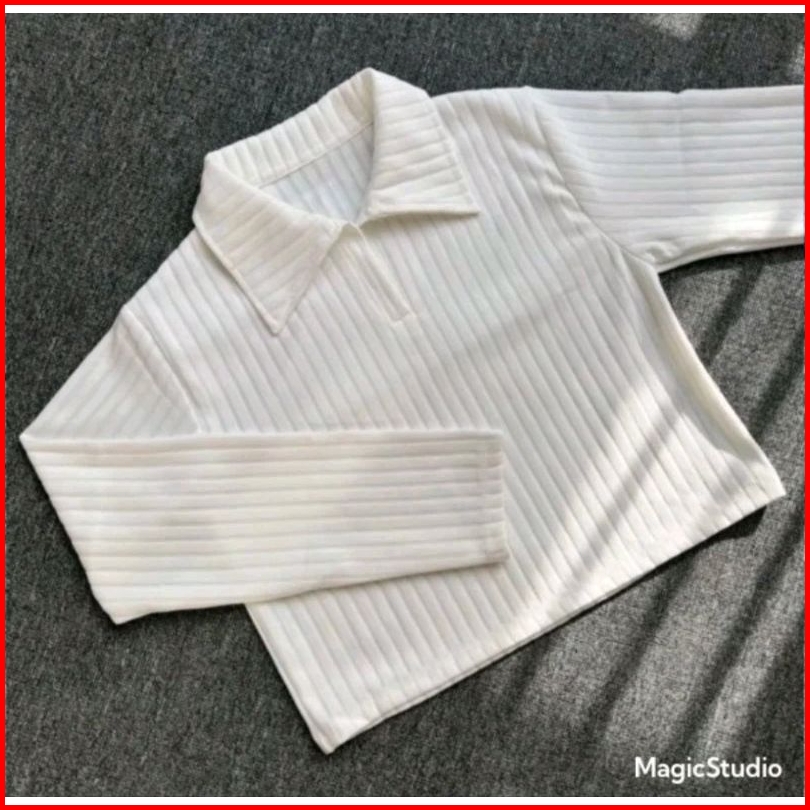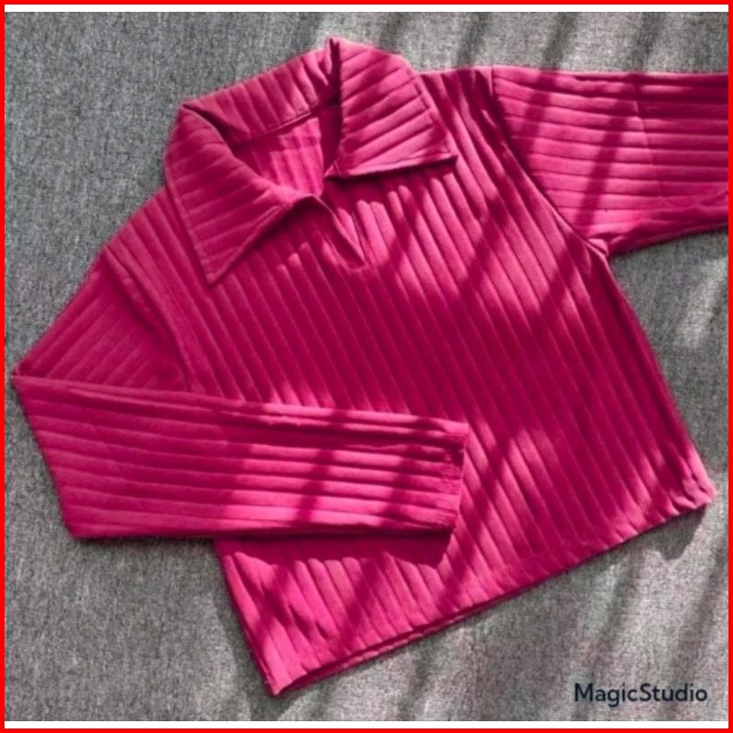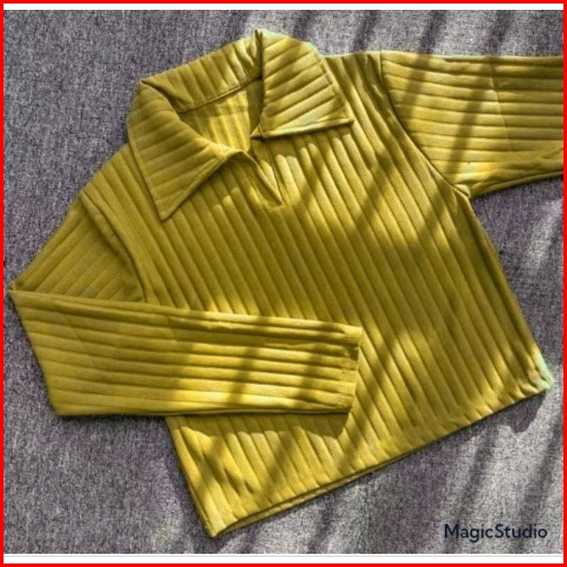 Baju Atasan Knit Hornets Crop Top Polo Lengang Panjang Wanita Masakini Atasan Wanita Knit Hornets Premium Atasan Rajut W