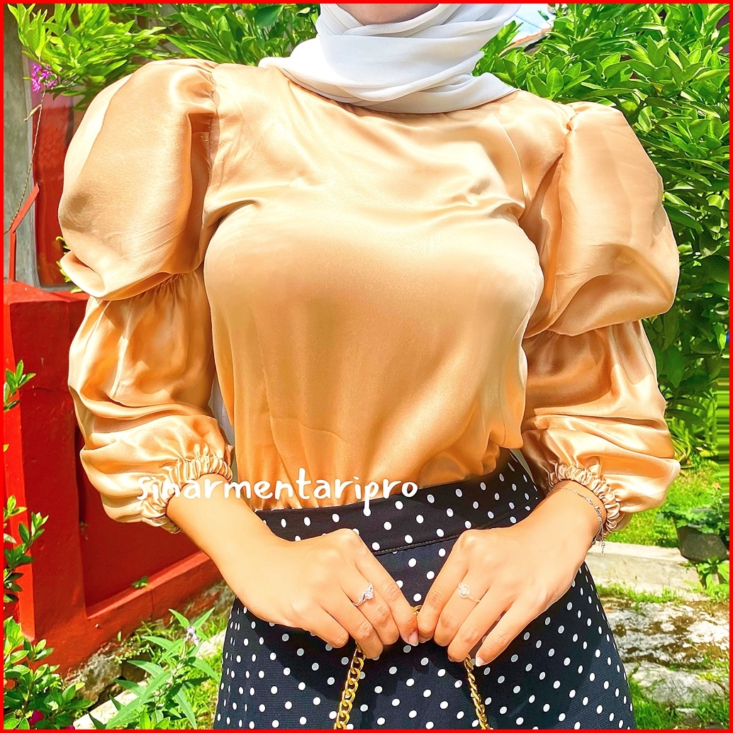 Boomble - Baju Atasan Tangan Balon Satin Silk Glossy