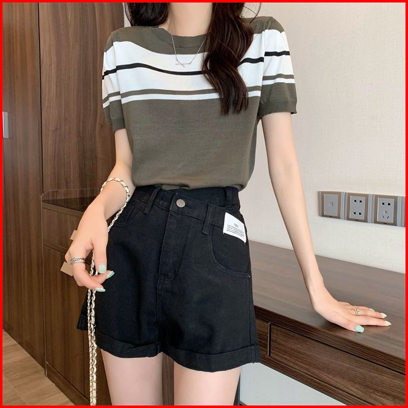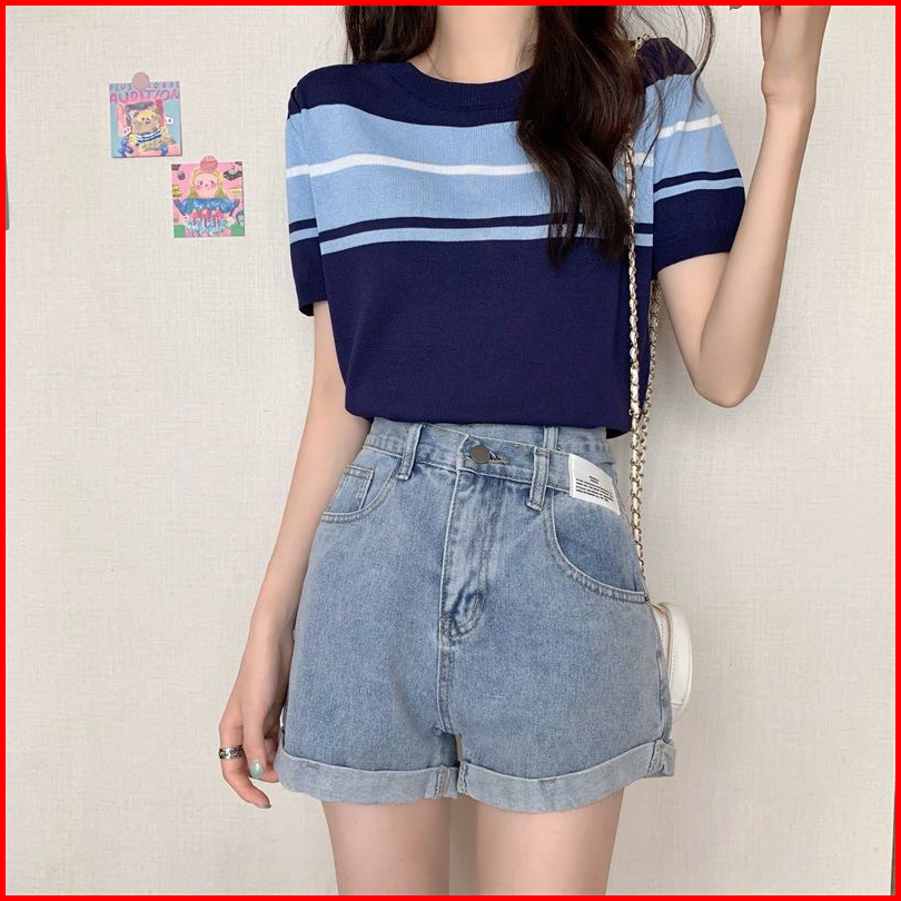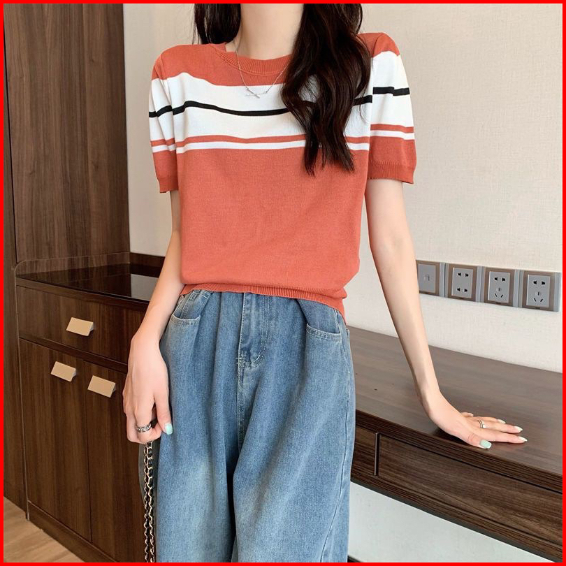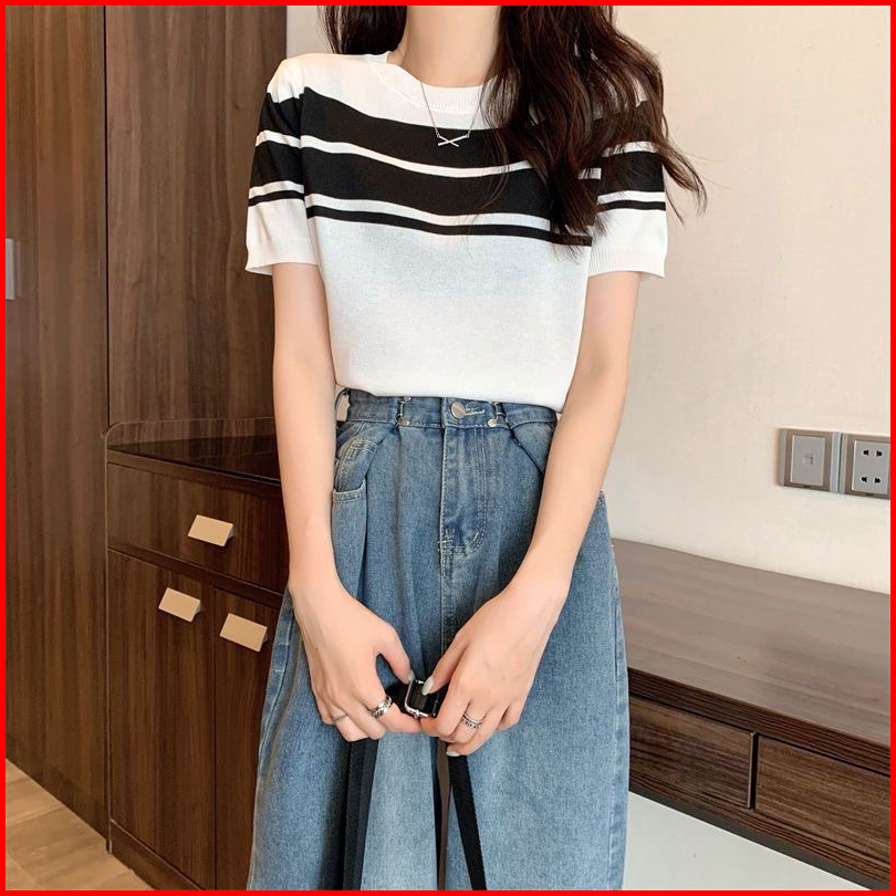 Blouse Knit Top Inner Korean Style Fashion Wanita - Atasan Rajut Salur