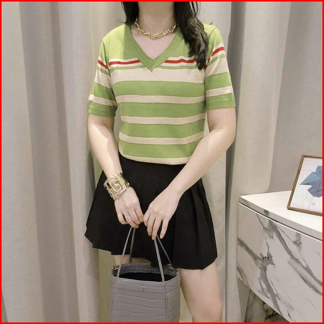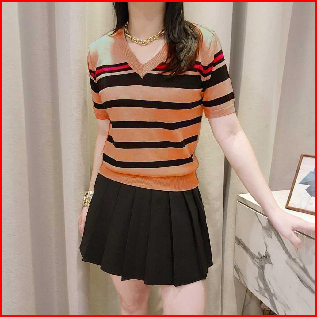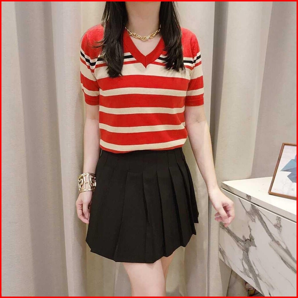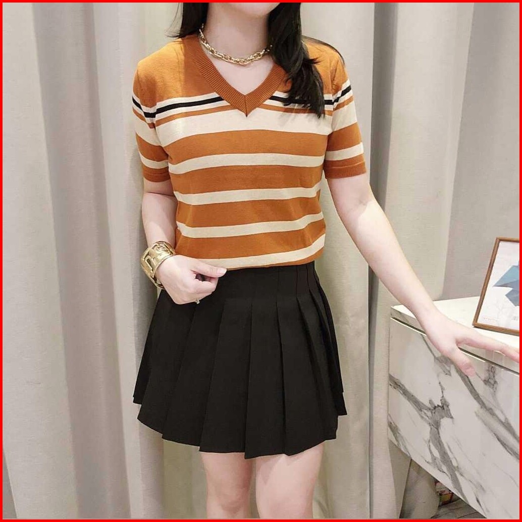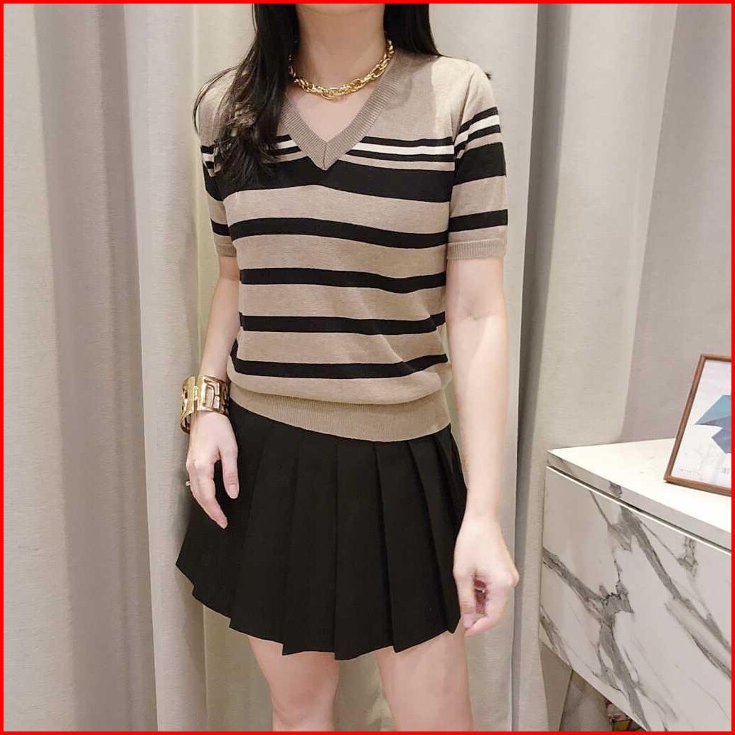 Tokomilkan Atasan Wanita Vente Top Strip Rajut Premium Korean Terbaru