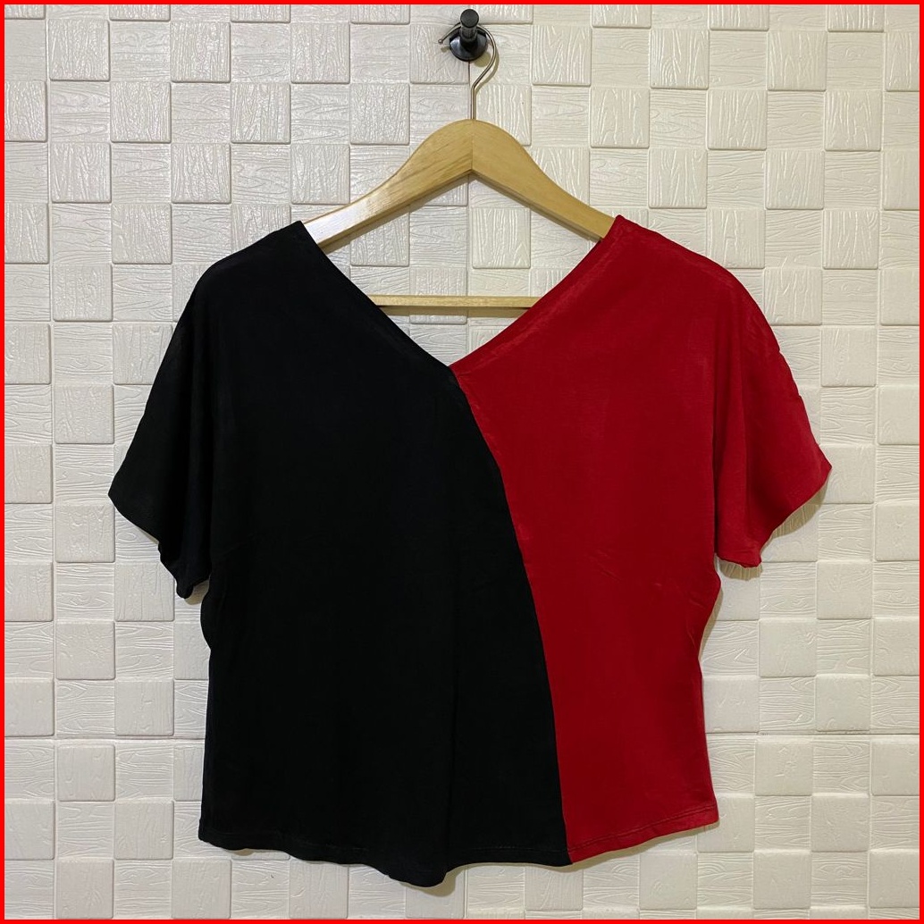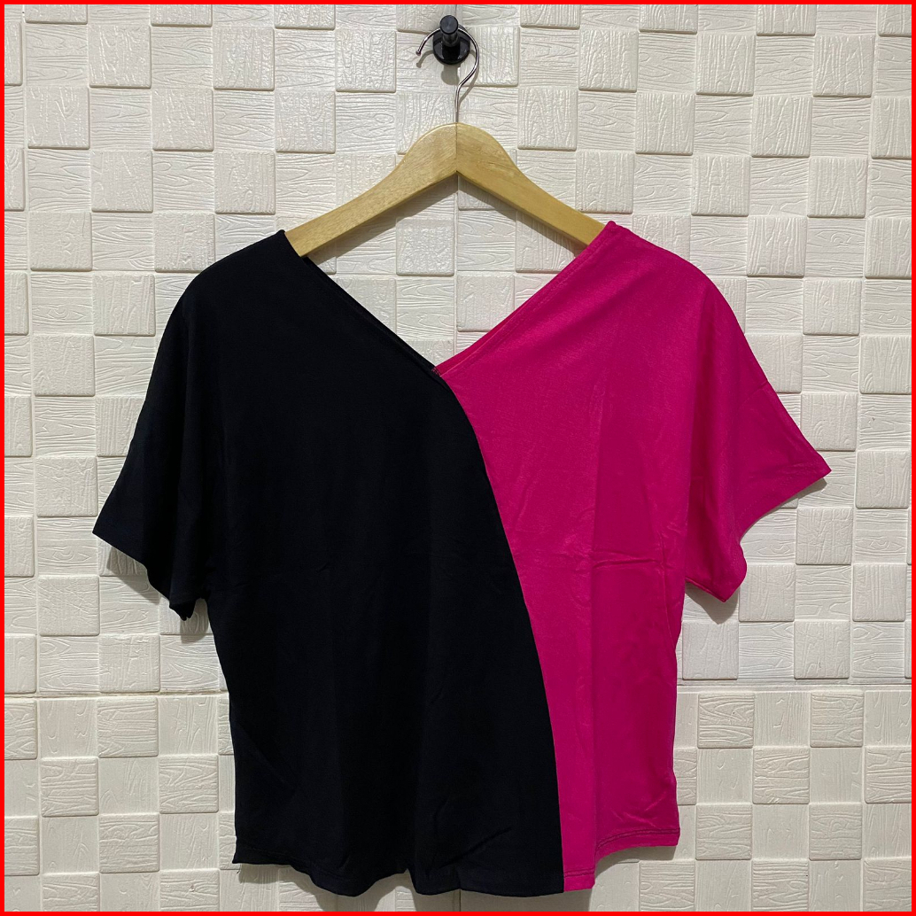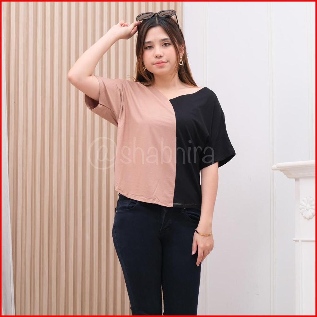 Atasan Kaos Batwing Crop Kombinasi Lengan Pendek Wanita Kaos Kekinian Atasan Crop Kaos Crop Kaos Wanita Atasan Terbaru K