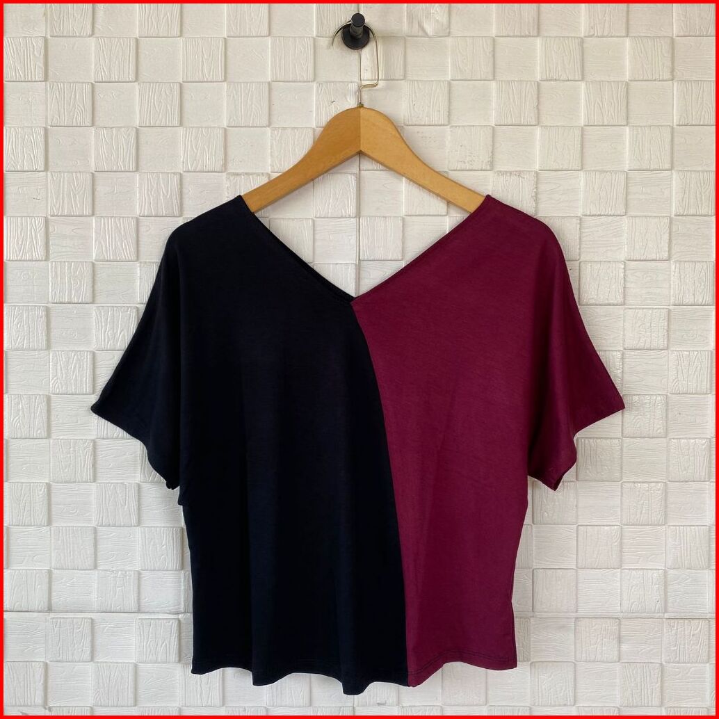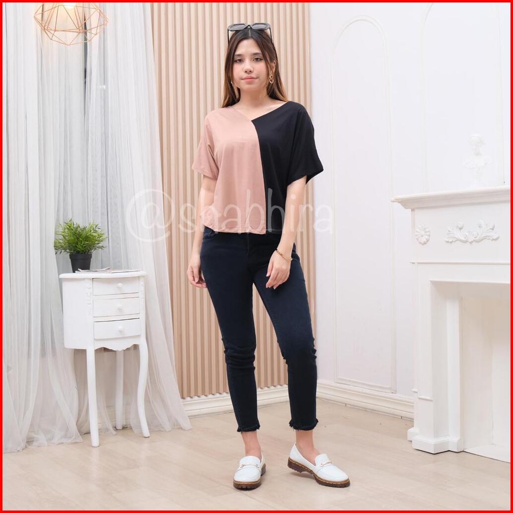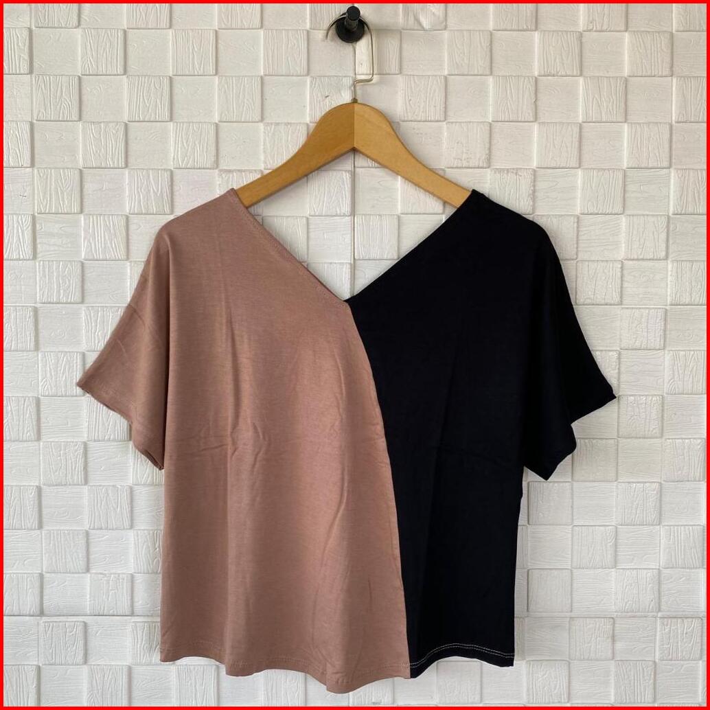 Atasan Kaos Batwing Crop Kombinasi Lengan Pendek Wanita Kaos Kekinian Atasan Crop Kaos Crop Kaos Wanita Atasan Terbaru K