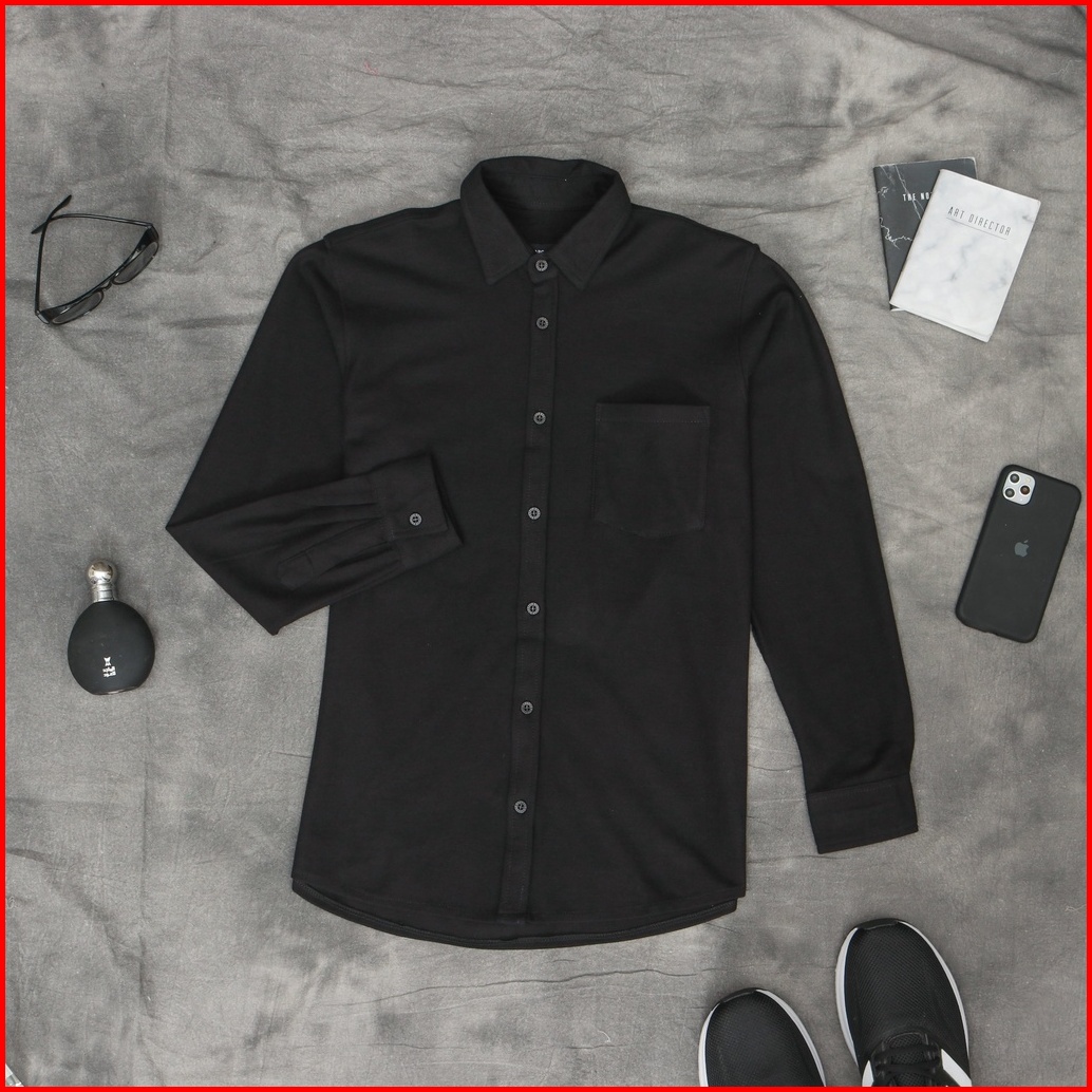 Dzargo Kemeja Polos Pria Lengan Panjang Pique Premium Hitam Baju Dll