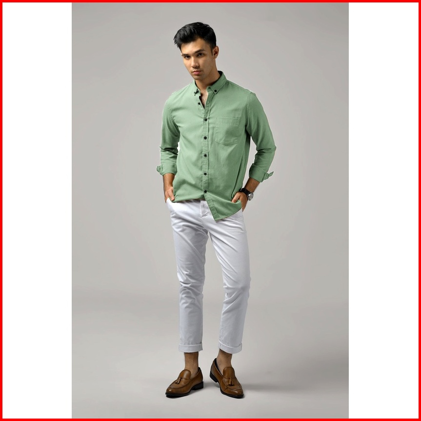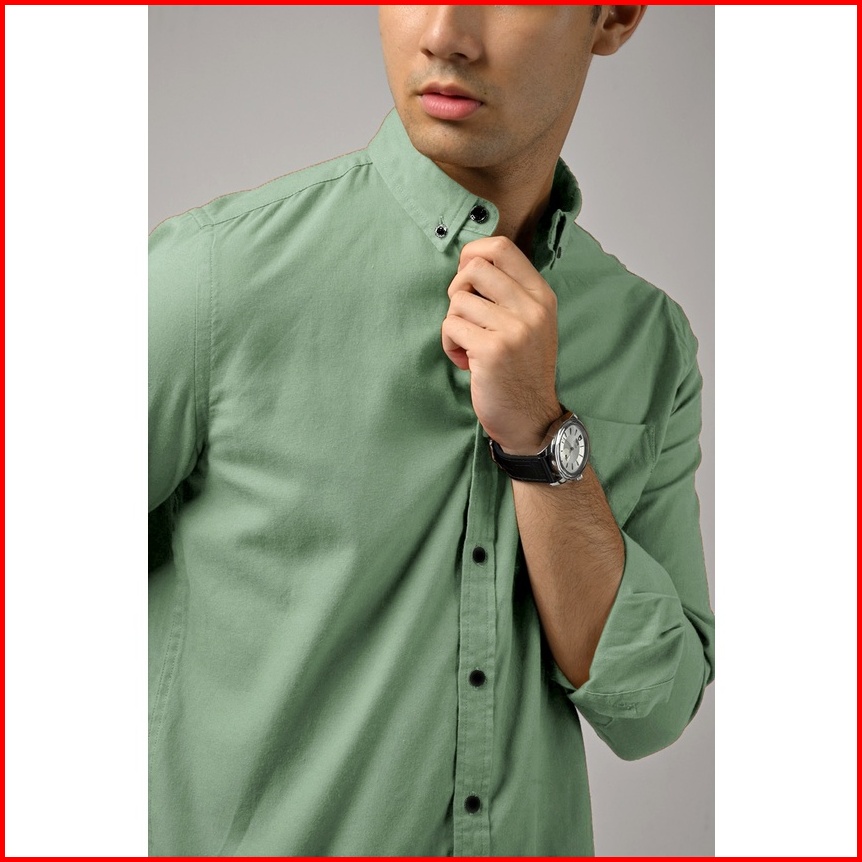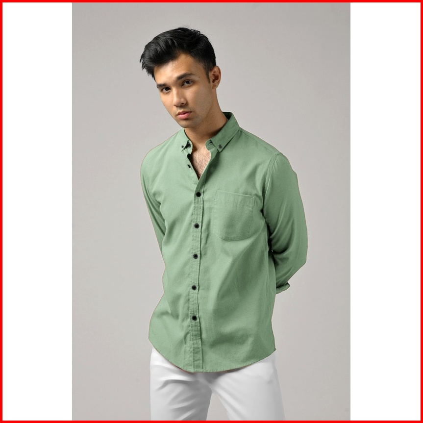 Kemejaku.ind- Kemeja Polos Pria Lengan Panjang Basic Atasan Slimfit Hijau Mint