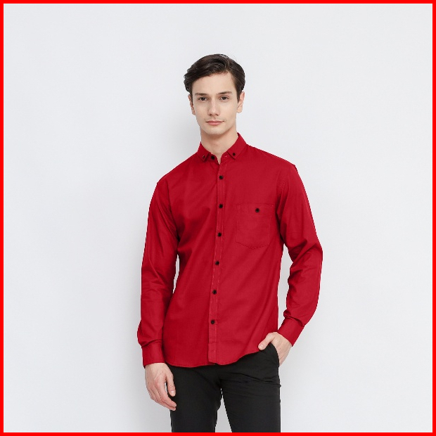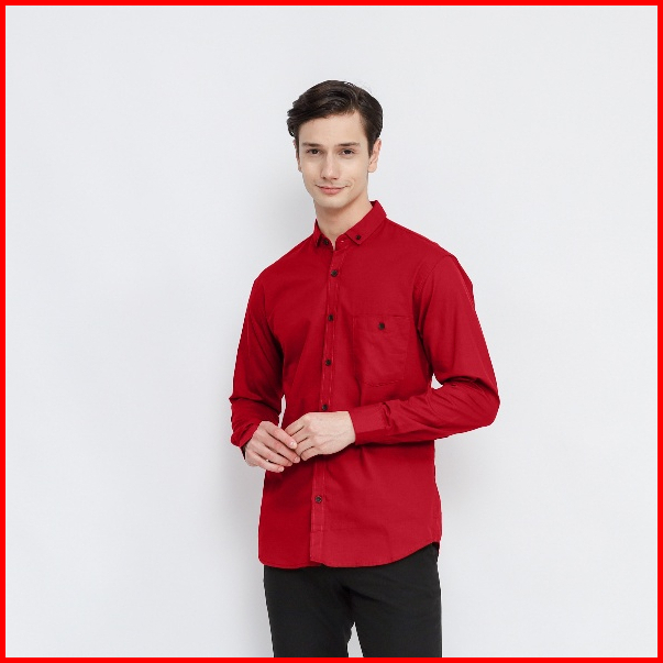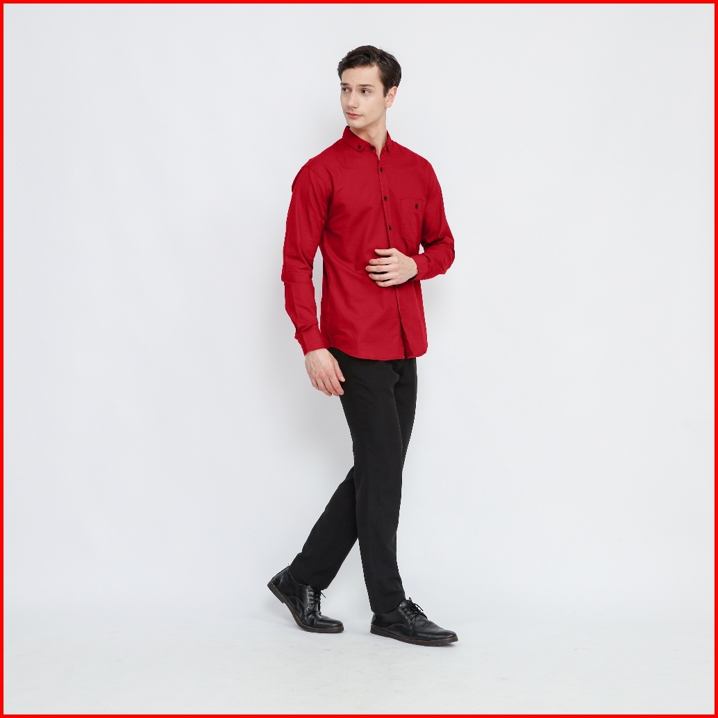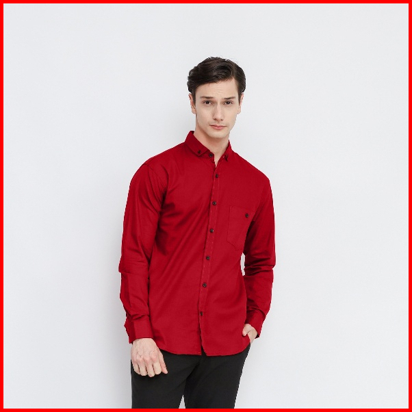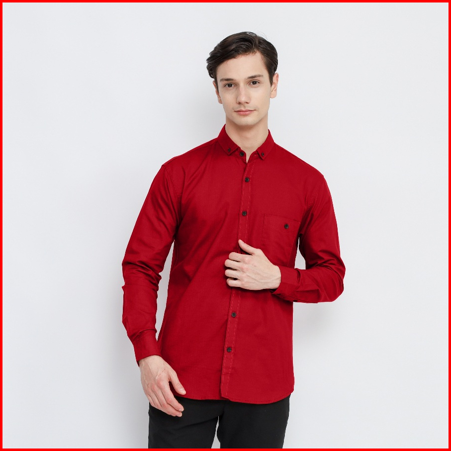 Kemeja Polos Panjang Pria Premium Marun Baju Slimfit Kasual Kantor By Razanstore.id