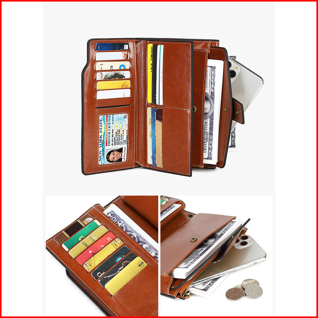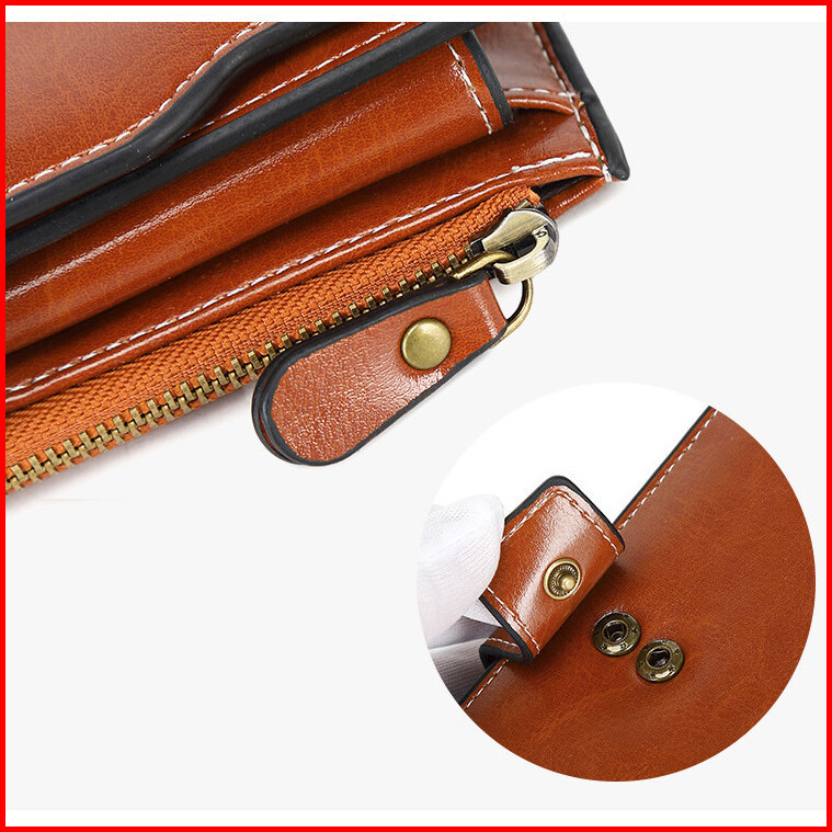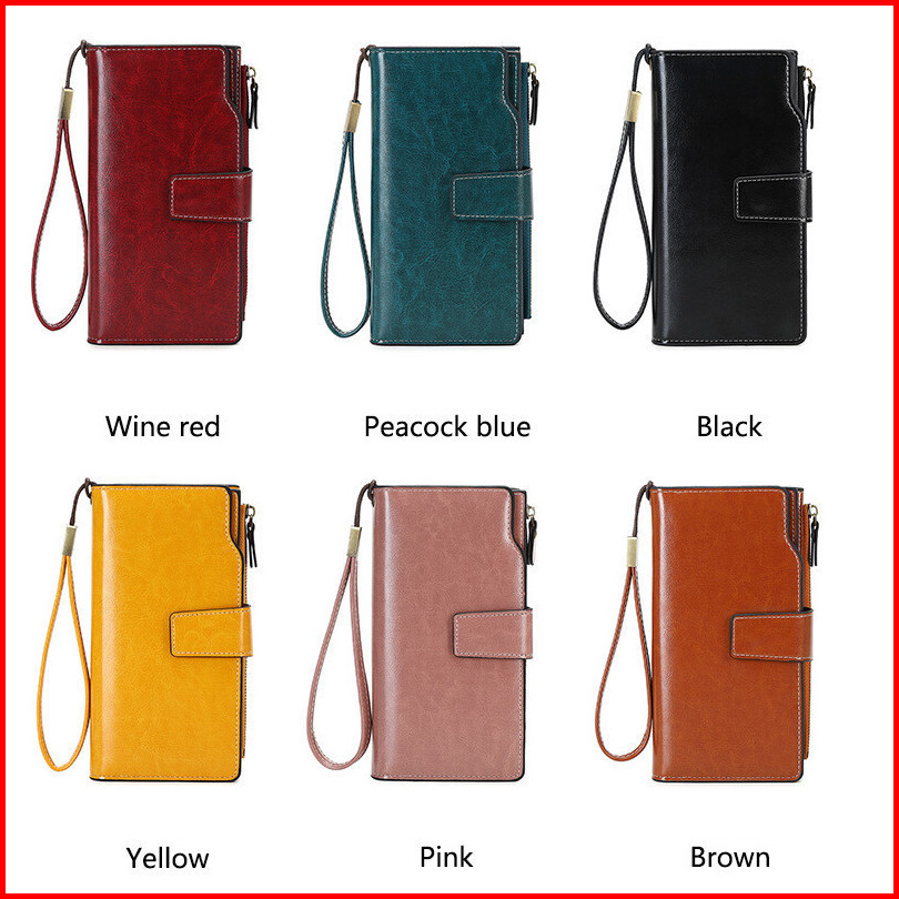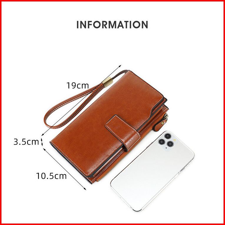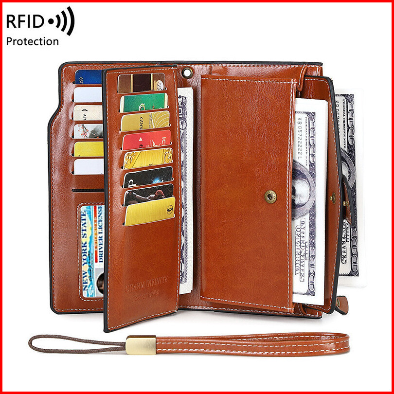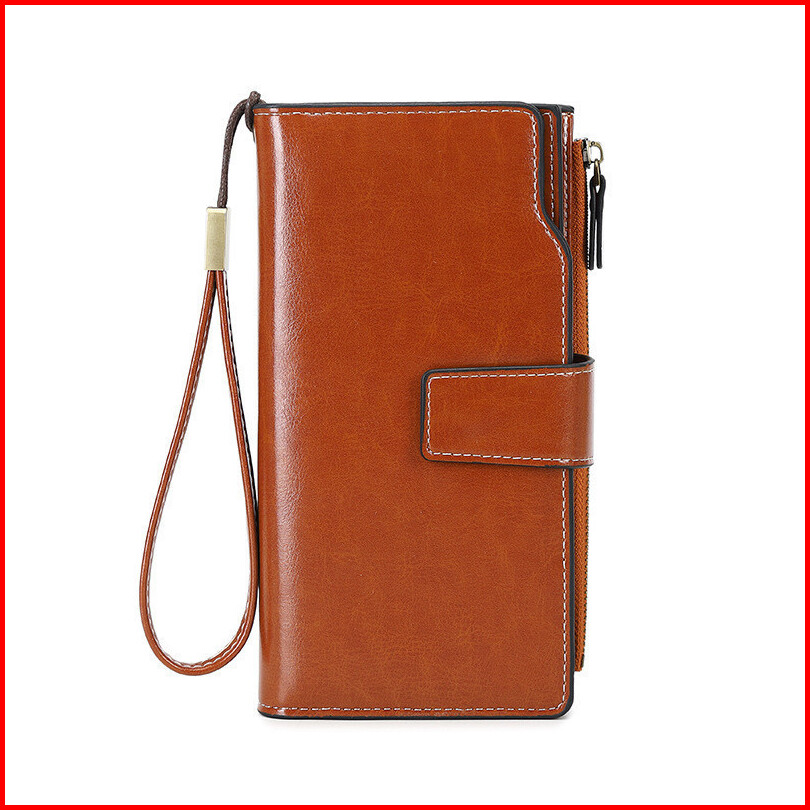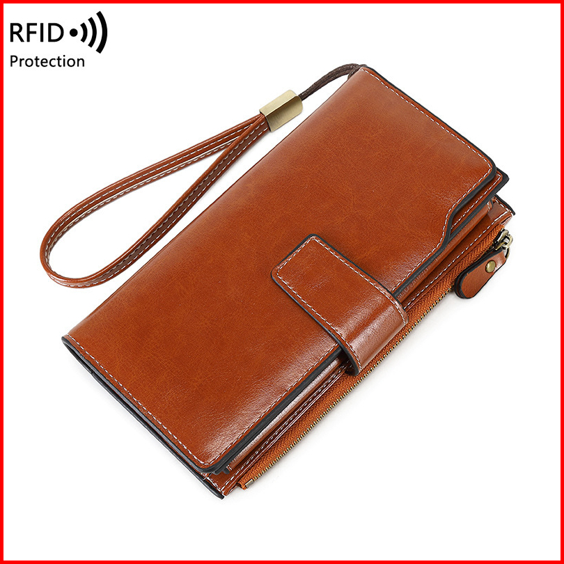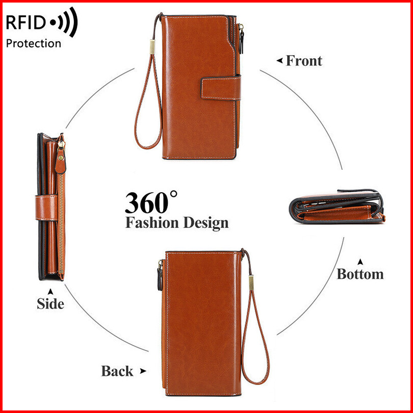 Jiufeng Dompet Rfid Panjang Wanita Dengan Gaya Retro Dengan Kulit Lilin Minyak Dan Interior Yang Luas