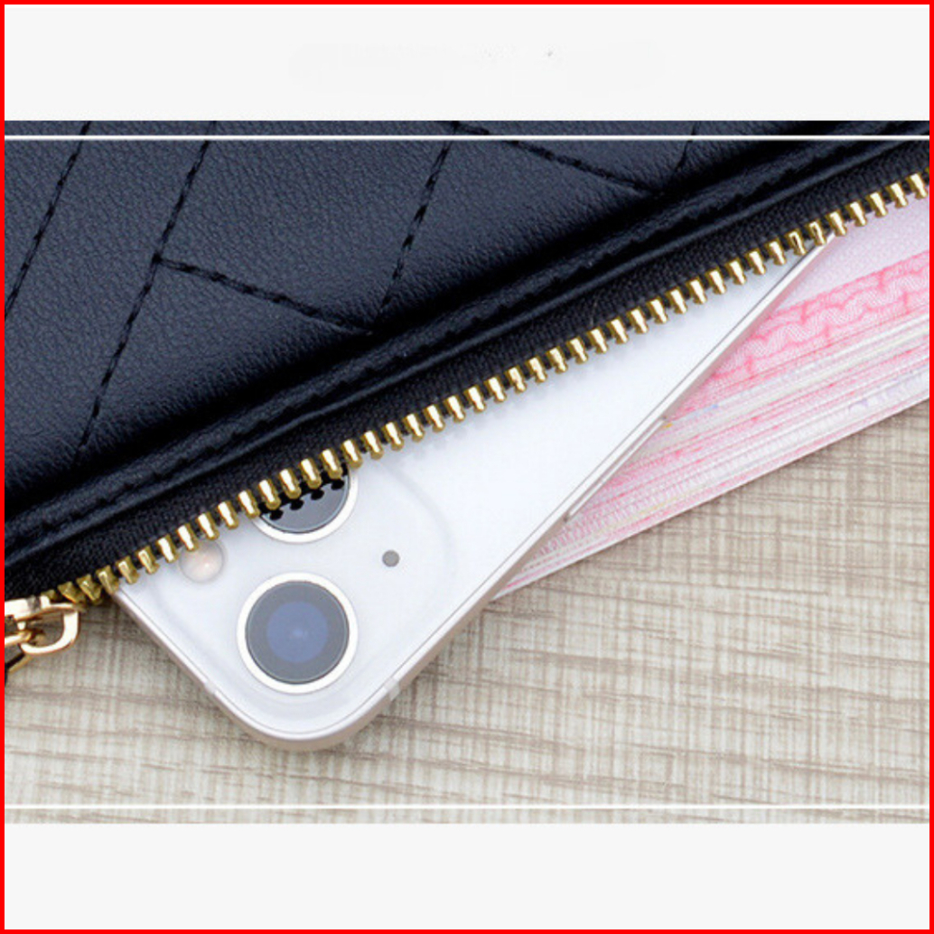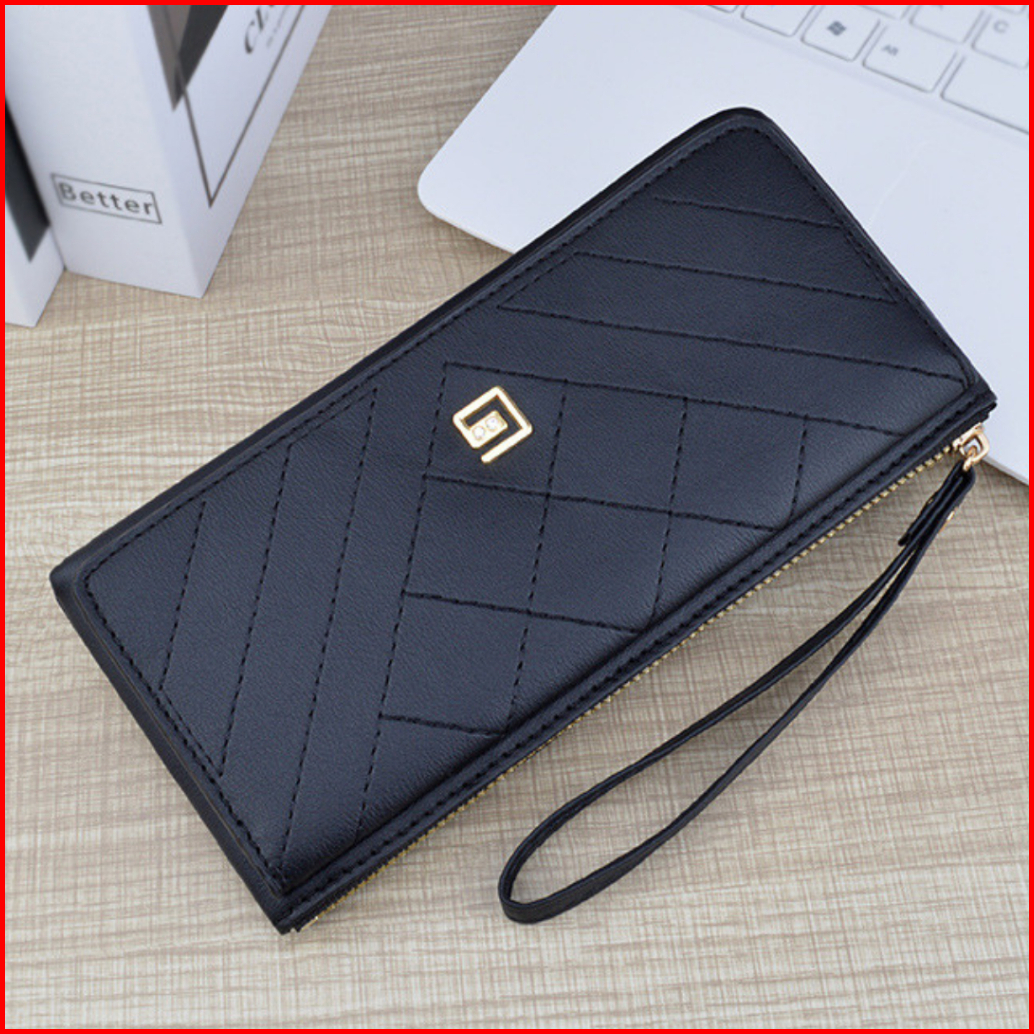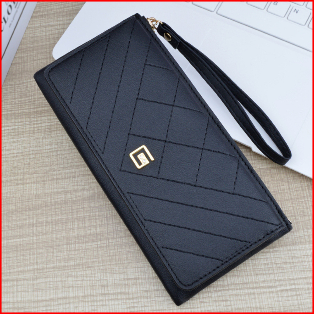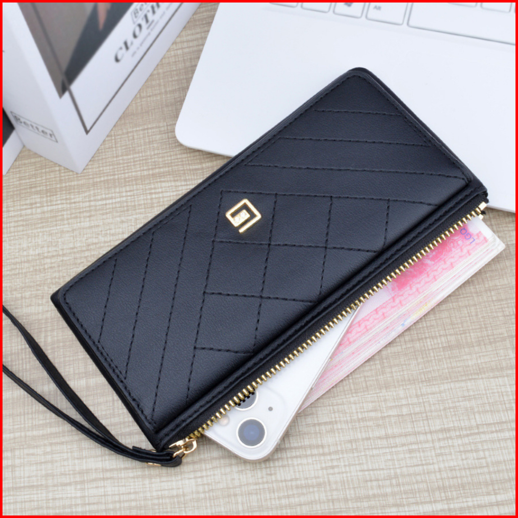 Dompet Panjang Wanita Lipat Tali Pendek Kulit Hitam Premium Wilvira Wa879b5 Remaja Resleting Slot Kartu Koin Cewek Murah