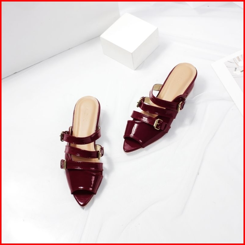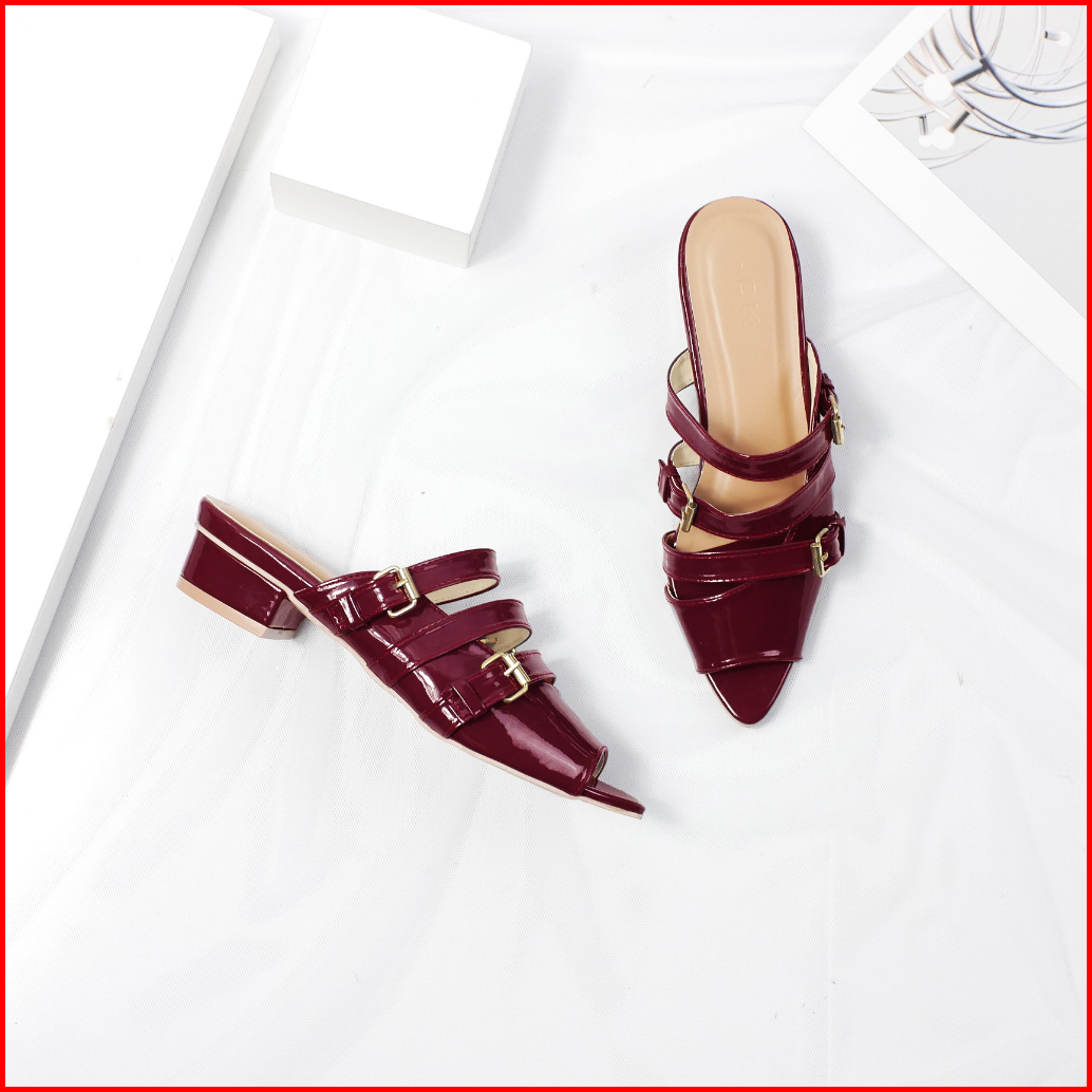 Adk Shoes Mules Hellen Gesper 3cm Sepatu Burgundy