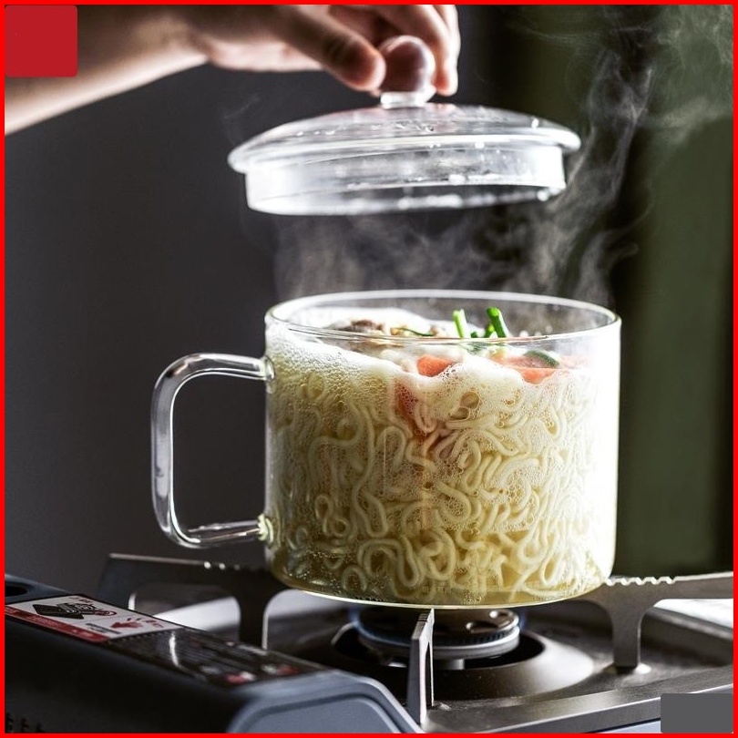 Pot Panci Masak Rebus Mie Stewing Soup Model Gagang Bahan Kaca Tahan Panas