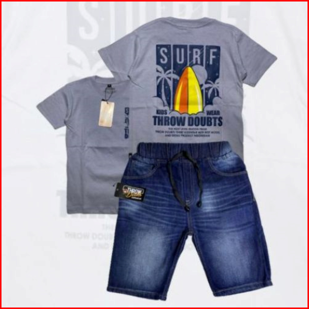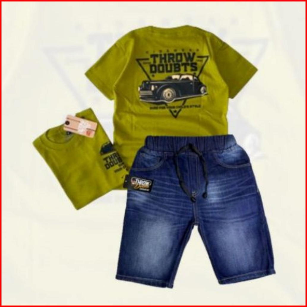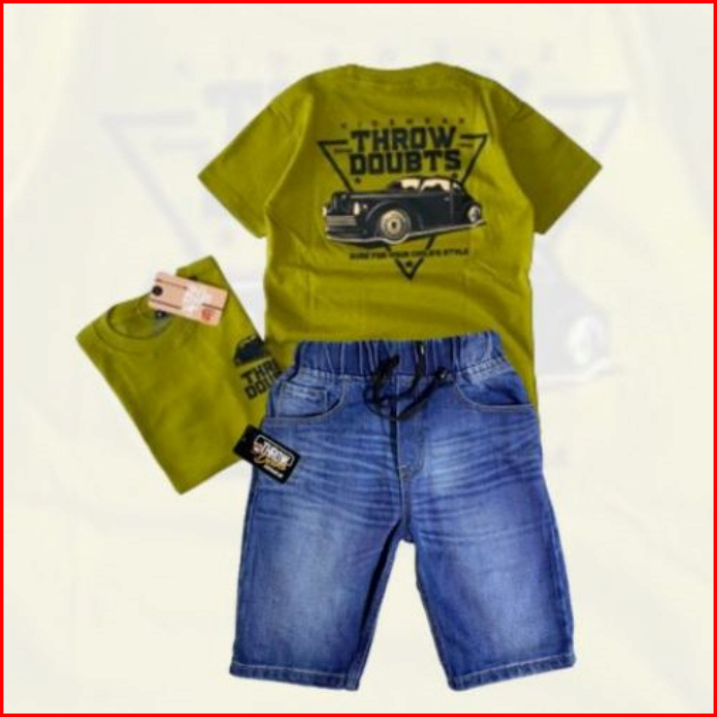 Setelan Jeans Slim Anak Dan Baju Kaos Distro Bahan Katun Usia 4-12 Tahun Ijo Olive Car Vw