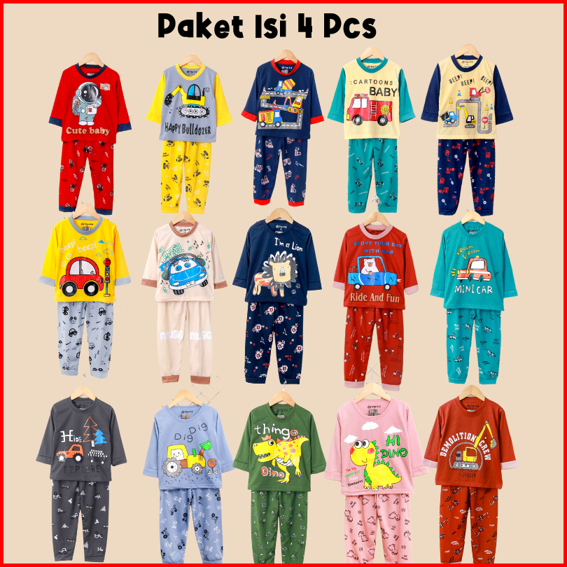 Top Kid Paket Grosir Baju Setelan Kaos Panjang Anak Laki-laki Isi 4