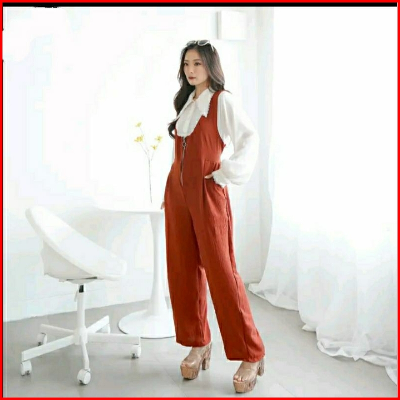 Jumpsuit Lalita Combi Fashion Wanita Crinkle Shakila Panjang Casual Hitam