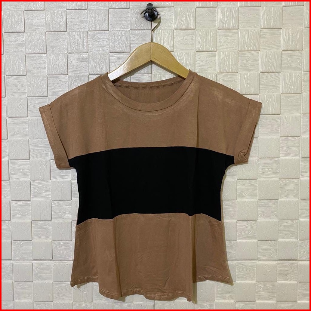 Atasan Kaos Stik Balik Kombinasi Warna Lengan Pendek Wanita Atasan Wanita Kaos Wanita Kaos Kombinasi Kaos Atasan Pakaian