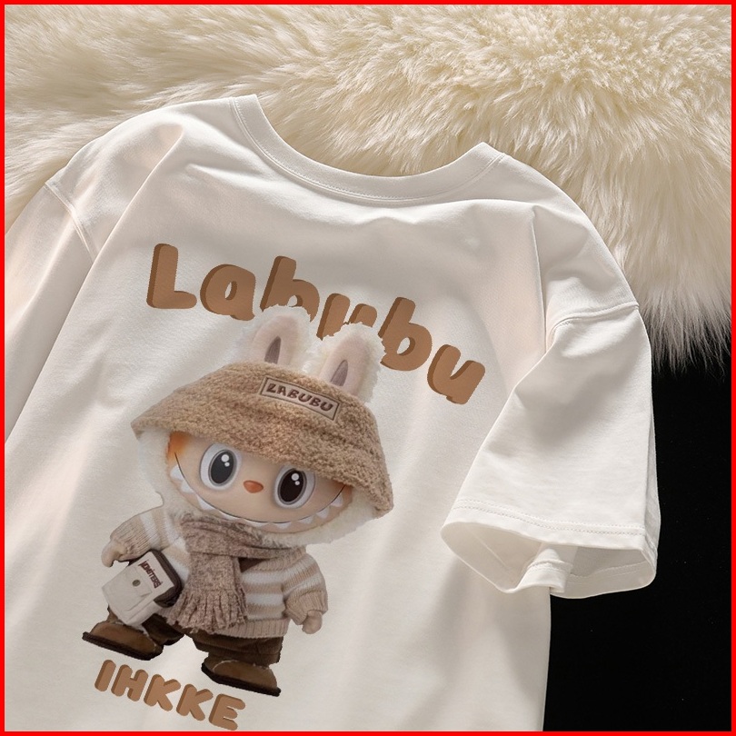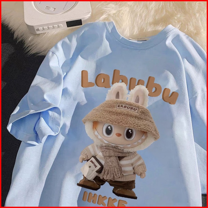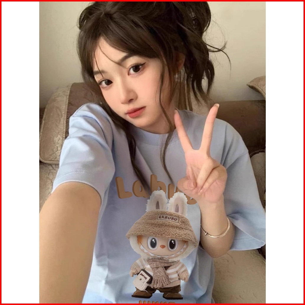 Po Floret Biru Kaos Oversize Labubu Cartoon Cute Korean Style Wanita Baju Atasan Wanita Terbaru