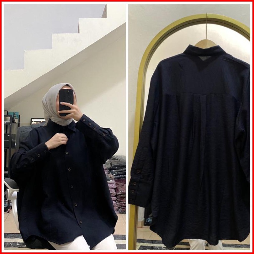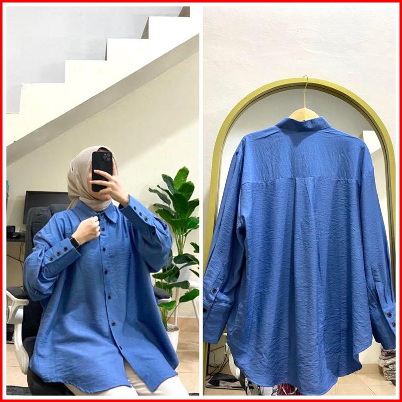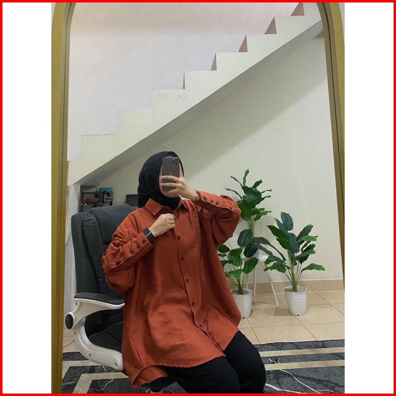 Baju Atasan Wanita Terbaru Kemeja Cewek Polos Oversize Lengan Panjang Blouse Kekinian Linen Premium Ld120 Abs Blus Jumbo