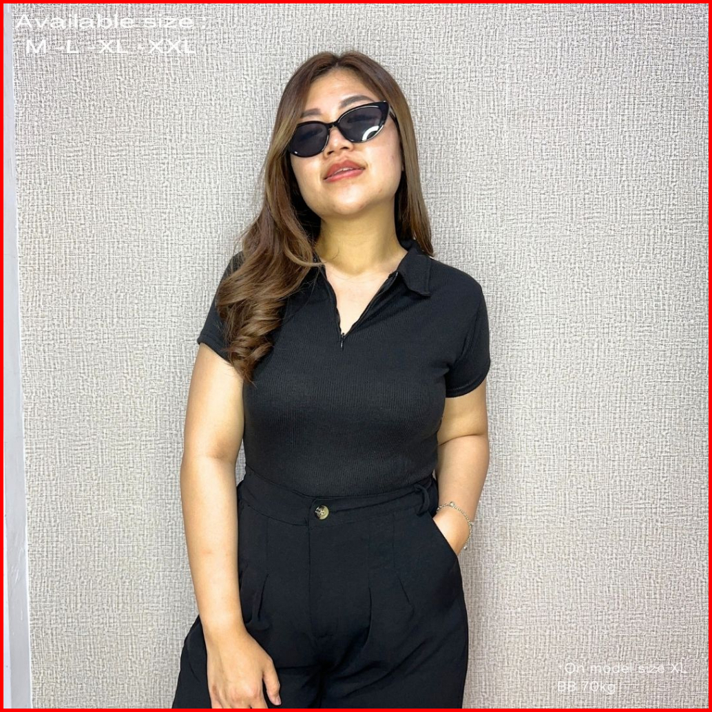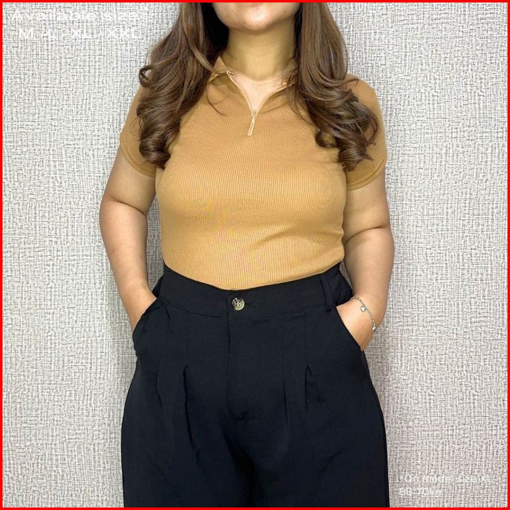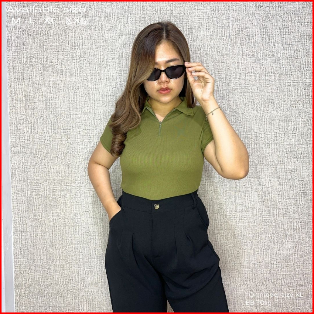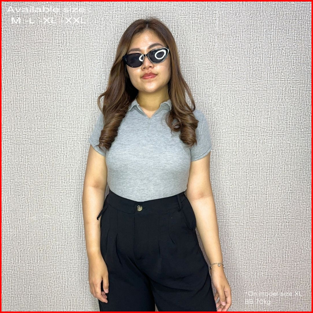 Uneed Cloth Top Polo Wanita Kaos Kerah Atasan Kerah Jumbo Polo Knit Top Kaos Polo Voya
