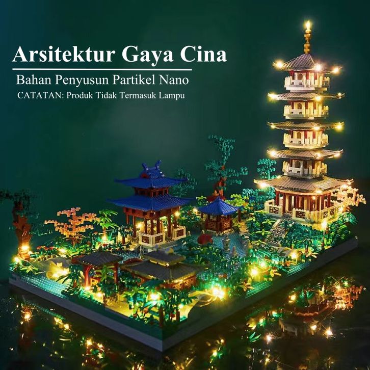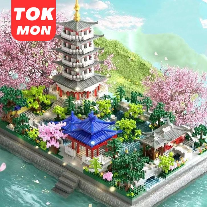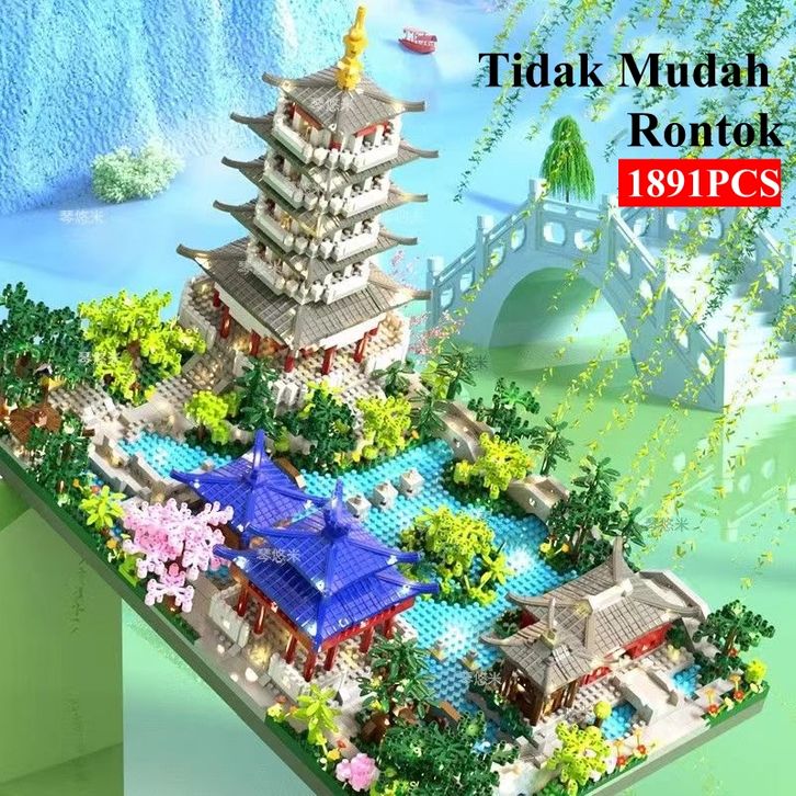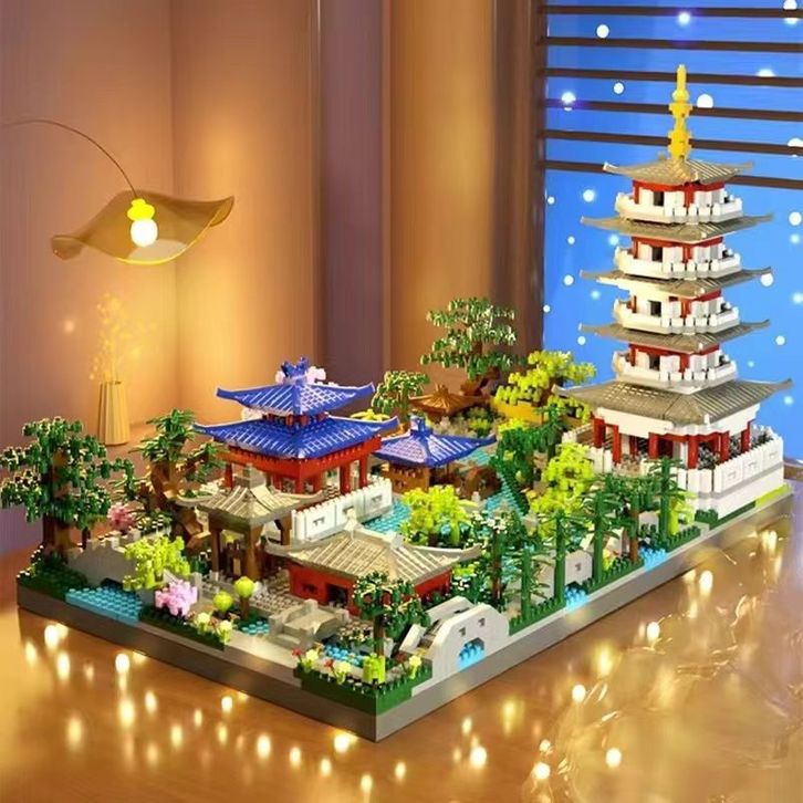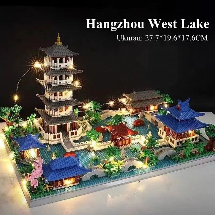 Mainan Miniatur Taman Arsitektur Cina Hangzhou West Lake Mini Balok Nano Blok Bangunan Mikro