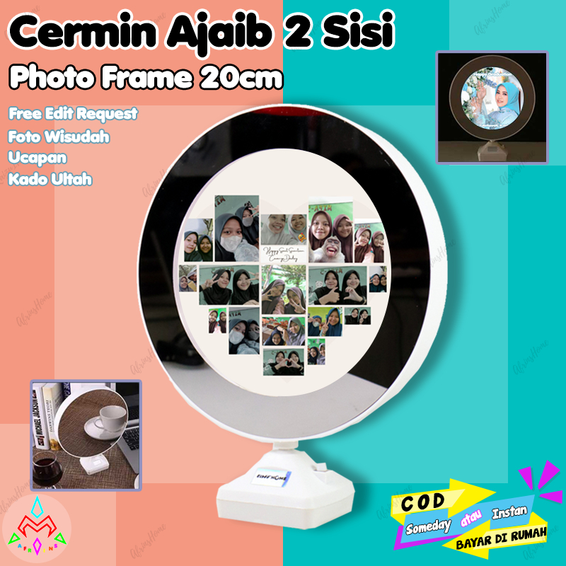 TaffHOME Cermin Ajaib Dengan Frame Foto Diameter 20cm Bisa Costom Foto
