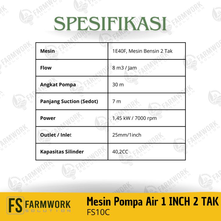 POMPA AIR IRIGASI SAWAH 1 INCH FARMWORK SOLUTION / WATER PUMP FS10C 1 INCH 2 TAK