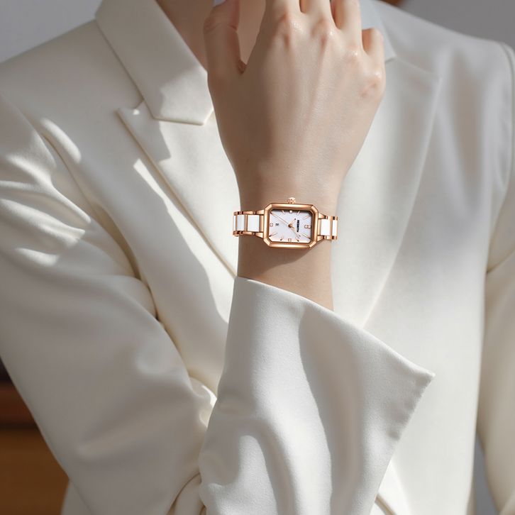 Rebirth Jam Tangan Wanita Kecil Korea Elegan Kalender Berlian Tali keramik Jam Tangan Cewek RE0139